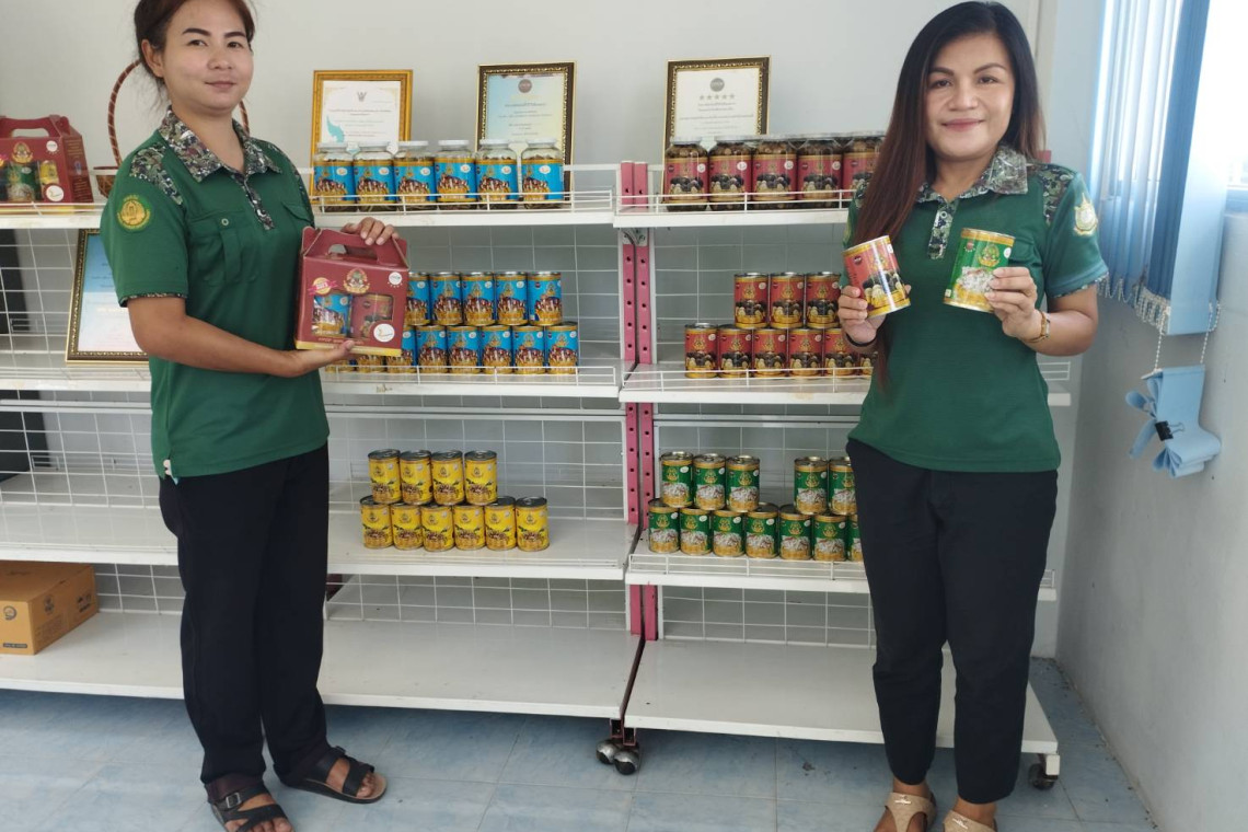 นายสมศักดิ์ ทวินันท์ หัวหน้าโครงการพัฒนาพื้นที่บริเวณหนองอึ่งอันเนื่องมาจากพระราชดำริเปิดเผยว่าปัจจุบันในการผลิตเห็ดและไข่มดแดงบันจุกระป๋องทางเราและกลุ่มสมาชิกฯทำการผลิตคือ1.เห็ดโคนในน้ำเกลือ 2.เห็ดเผาะในน้ำเกลือ 3.เห็ดตับเต่าในน้ำเกลือ 4.ไข่มดแดงในน้ำเกลือ และ5.แม่เป้งคั่วเกลือ ซึ่งทุกอย่างบรรจุกระป๋องและในแต่ละปีการผลิตขึ้นอยู่กับสภาพอากาศและวัตถุดิบในป่าของโครงการฯว่ามีมากหรือมีน้อยและปีที่ผ่านมาสามารถจำหน่ายได้กว่าล้านบาทและในปีนี้2567คาดว่าจะจำหน่ายได้ 1.2 ล้านบาท