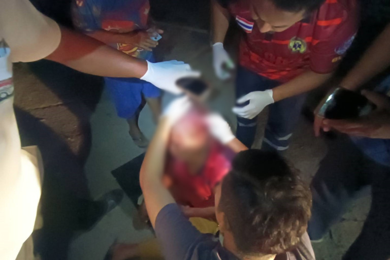 ที่เกิดเหตุ ภายในแคมป์คนงานทำถนน พบนางสุกัญญา อายุ 58 ปี อยู่ในการมึนเมา ถูกด้ามจอบยาวกว่าหนึ่งเมตร ตีเข้าที่ศีรษะเป็นแผลขนาดใหญ่มีเลือดไหล เจ้าหน้าที่กู้ภัยฯ ปฐมพยาบาลเบื้องต้น ก่อนเคลื่อนย้ายส่งโรงพยาบาลอย่างเร่งด่วน ส่วนคู่กรณีคือสามี ทราบชื่อคือนายทองใส อายุ 64 ปี อยู่ในอาการมึนเมา ยืนรอให้การกับเจ้าหน้าที่ตำรวจ อยู่ในที่เกิดเหตุ