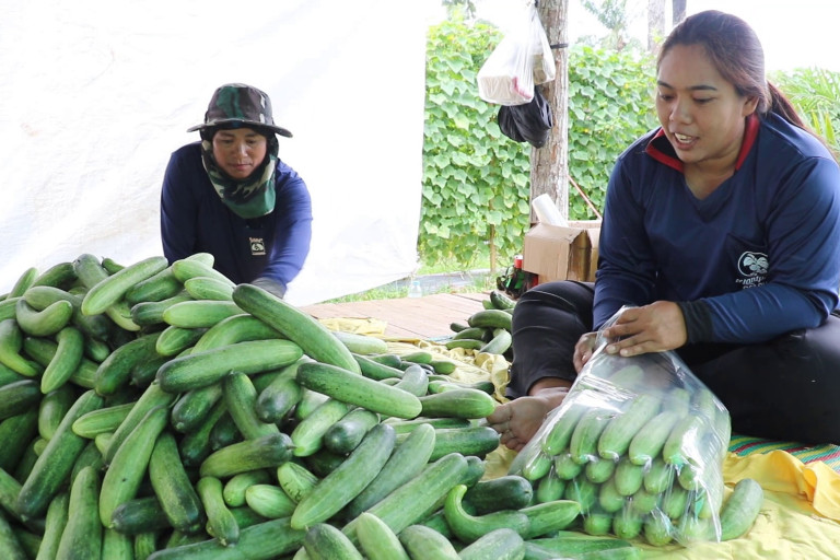แตงกวาเป็นผักเศรษฐกิจที่ตลาดยังต้องการอีกจำนวนมาก ทำให้ชาวสวนล้มทิ้งต้นปาล์มน้ำมันไม่ปล่อยเวลาและพื้นที่เสียเปล่าในช่วงรอปาล์มชุดใหม่เติบโต หันปลูกแตงกวาในร่องสวนปาล์มที่ตายแล้วใช้เวลาเพียงประมาณ 35 วัน เก็บเกี่ยวผลผลิตบรรจุถุงส่งขายพ่อค้า รับเงินกว่าแสนบาทต่อเดือนสร้างรายได้งาม