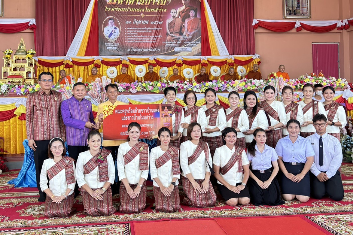 นายณัฏฐนันท์ สีลา ผู้อำนวยการโรงเรียนบ้านแดงโนนสว่าง กล่าวว่า โรงเรียนบ้านแดงโนนสว่าง ได้รับความเมตตาจากหลวงพ่อพระครูวิมลบุญโกศล เจ้าอาวาสวัดวิมลนิวาส พระครูธรรมธรประกาสิตชุตินธโร เจ้าคณะตำบลเหนือเมือง ธรรมยุต เจ้าอาวาสวัดเกษมทรัพย์พัฒนาราม พระครูปลัดพรรคพงศ์ ปิยธมฺโม เจ้าคณะตำบลเหนือเมือง เจ้าอาวาสวัดศรีจันทร์(บ้านแดง) พร้อมศิษยานุศิษย์ และได้รับการสนับสนุนจากคณะครู บุคลากรทางการศึกษา คณะกรรมการสถานศึกษาคณะกรรมการที่ปรึกษา ผู้นำท้องถิ่น ผู้นำชุมชน ชาวบ้านบ้านโนนสว่าง บ้านแดง และชุมชนใกล้เคียง โรงพยาบาลส่งเสริมสุขภาพตำบลบ้านโนนสว่าง ตลอดทั้งหน่วยงานภาครัฐ และเอกชนที่ให้การสนับสนุนงบประมาณในการสร้างสิ่งปลูกสร้างให้กับโรงเรียนบ้านแดงโนนสว่าง จึงได้จัดพิธีมอบเพื่อใช้ในการจัดกิจกรรมการเรียนการสอนเป็นประโยชน์กับทางราชการต่อไป
