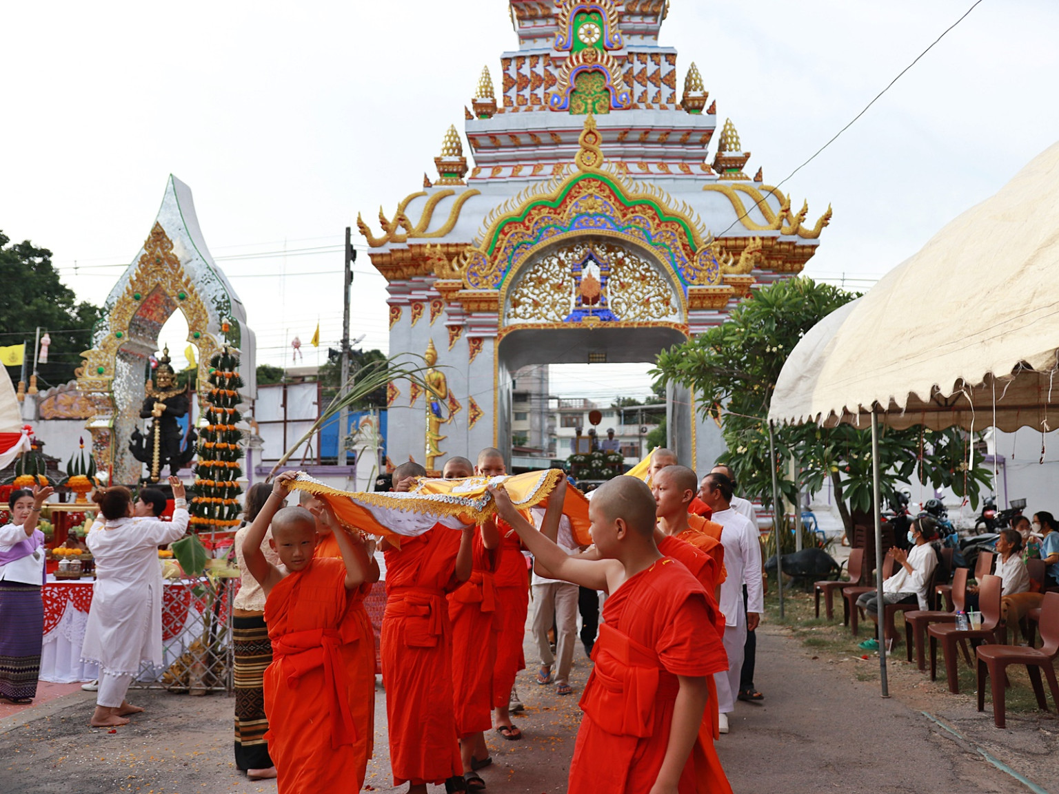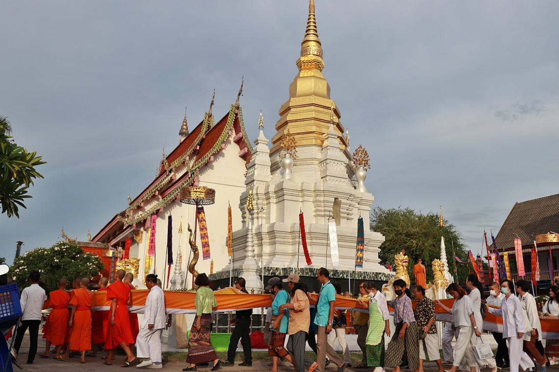 โดยพุทธศาสนิกชนได้ตั้งขบวนผ้าห่มพระธาตุและตราตั้งพระอุปัชฌาย์ ณ ศาลหลักเมืองพะเยา จากนั้นขบวนเคลื่อนผ่านแยกตลาดสดพะเยาอาเขต เลี้ยวขวาเข้าสู่ถนนราชวงศ์ ผ่าน สภ.เมืองพะเยา เลี้ยวขวาเข้าประตูโขงวัดราชคฤห์ ก่อนที่จะมีการนำผ้าห่มพระธาตุเดินพระธาตุ 3 รอบและนำขึ้นห่มองค์พระธาตุ จากนั้นทำพิธีบวงสรวงท้าวเวสสุวรรณ และเข้าสู่พระวิหารทำพิธีสงฆ์ เพื่อมอบตราตั้งพระอุปัชฌาย์ถวายแด่พระครูวิสิฐวรคุณ โดยมีพระเดชพระคุณพระญาณเวที ที่ปรึกษาเจ้าคณะภาค6, เจ้าอาวาสวัดศรีอุโมงค์คำ อ.เมือง จ.พะเยา เป็นประธานในพิธี และพระสงฆืจำนวน 50 รูป เจริญพุทธมนต์สืบชะตา เป็นอันเสร็จพิธี