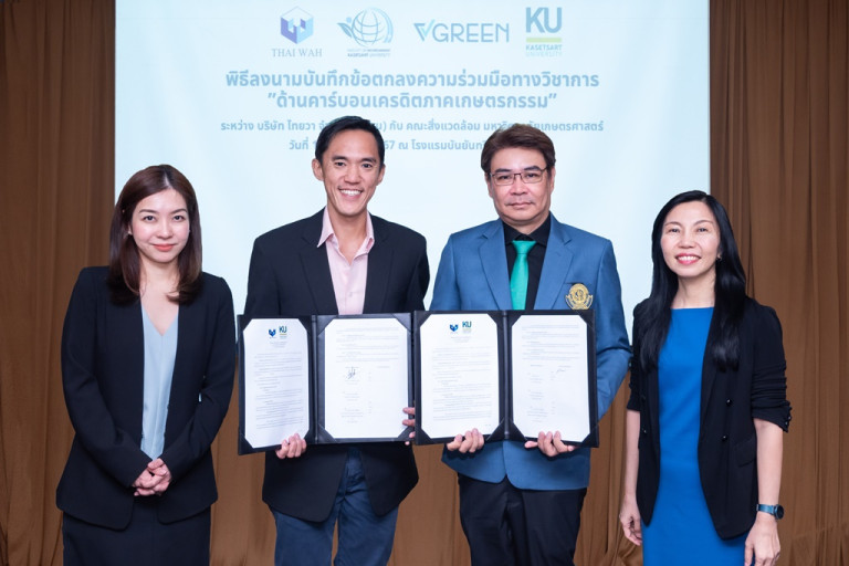 รศ.ดร.ตุลวิทย์ สถาปนจารุ คณบดี คณะสิ่งแวดล้อม กล่าวว่า “มหาวิทยาลัยเกษตรศาสตร์มีความเชี่ยวชาญเชิงบูรณาการด้านเกษตรกรรม การแปรรูปอาหาร และสิ่งแวดล้อม และมีความยินดีเป็นอย่างมากที่ได้มีความร่วมมือกับทางไทยวาในการตอบโจทย์ยุทธศาสตร์ชาติในการเข้าสู่ Carbon Neutrality & Net Zero ซึ่งเป็นนโยบายของมหาวิทยาลัยด้านการพัฒนาที่ยั่งยืนและเป็นนโยบายของประเทศ”