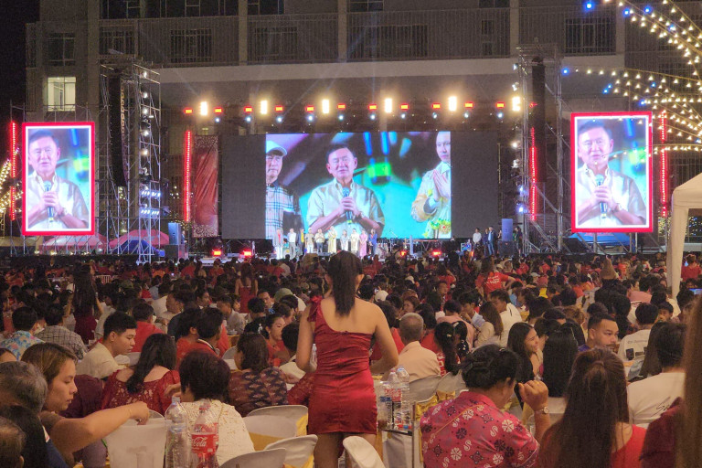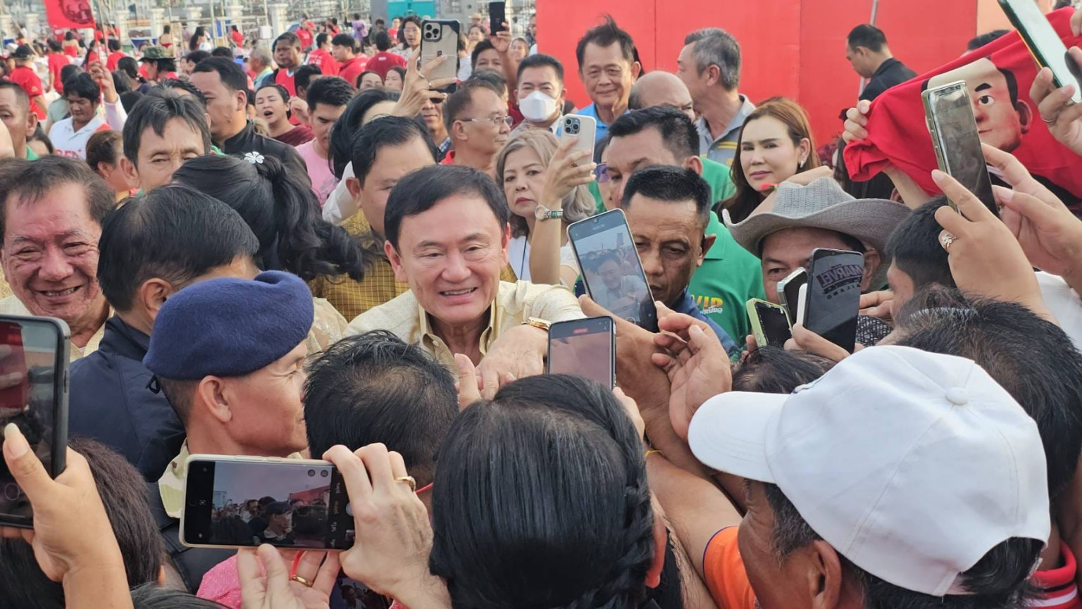 “ทักษิณ” เลือกเดินสายไปยัง “ปทุมธานี” ขึ้นปราศรัยในงานบวชต่อหน้าคนหลักหมื่น ประกาศเชิญชวนคนเสื้อแดงกลับสู่พรรคเพื่อไทย “ผมกลับมาแล้ว พี่น้องชาวเสื้อแดงก็ต้องกลับมาอยู่ด้วยกันนะ” “ทักษิณ” หมายตาใช้ “อบจ.ปทุมธานี” เป็นจุดเริ่มต้นบททดสอบว่ายุทธศาสตร์รวมบ้านใหญ่ใต้เพื่อไทยจะทำงานหรือไม่?