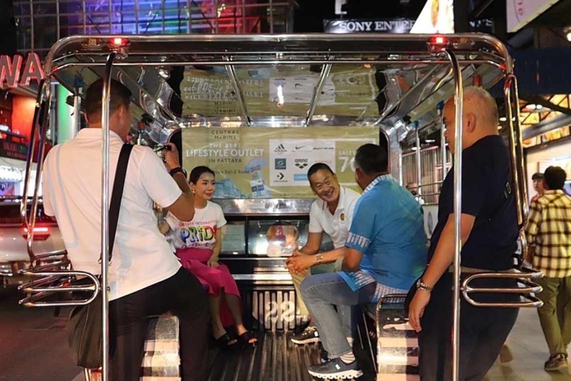 เมื่อเวลา 20.30 น. วันที่ 22 มิ.ย.67 นายเศรษฐา ทวีสิน นายกรัฐมนตรี นั่งรถโดยสารประจำทาง รอบเมืองพัทยา (รถสองแถว หมายเลข 224) เดินทางมายัง ถนนวอล์คกิ้งพัทยาใต้ หมู่ 10 ต.หนองปรือ อ.บางละมุง จ.ชลบุรี เพื่อเยี่ยมชมเมือง และ บรรยากาศ ย่านสถาบันเทิงระดับโลก พร้อมกับ ทักทายนักท่องเที่ยว โดยมี นายธวัชชัย ศรีทอง ผู้ว่าราชการจังหวัดชลบุรี , นายปรเมศวร์ งามพิเชษฐ์ นายกเมืองพัทยา พล.ต.ท.สมประสงค์ เย็นท้วม ผบช.ภ.2 และ หัวหน้าราชการต่างๆ ให้การต้อนรับ
