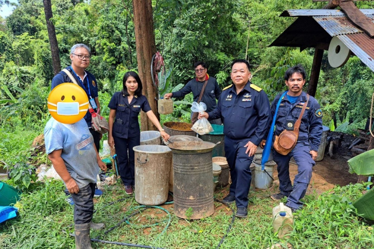 เมื่อวันที่ 22 มิ.ย.67 นายทินกร อ่องแสงคุณ สรรพสามิตพื้นที่อุตรดิตถ์ พร้อมด้วย สรรพสามิตพื้นที่สาขาน้ำปาด หัวหน้าฝ่ายปราบปราบ และเจ้าหน้าที่สายตรวจสายที่ 3และสายตรวจที่ 4 ได้สืบทราบว่ามีการลักลอบผลิตสุราเถื่อนร่วมกลางสวนทุเรียน อ.ท่าปลา จึงได้ร่วมกันวางแผนจับกุมแหล่งผลิตสุราเถื่อนดังกล่าว ที่บริเวณเขาสวนทุเรียน หมู่ที่ 5 ต.นางพญา อ.ท่าปลา จ.อุตรดิตถ์ จับกุมคดีสุรา (คดีคุณภาพ)