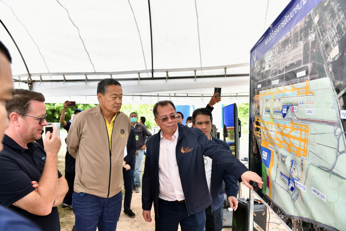 เมื่อเวลา 10.25 น. นายกฯ เดินทางถึงท่าอากาศยานนานาชาติอู่ตะเภา ระยอง-พัทยา เพื่อพูดคุยหารือประเด็นปัญหาและการพัฒนาพื้นที่เชิงพาณิชย์ รองรับการลงทุนในพื้นที่เขตพัฒนาพิเศษภาคตะวันออก (อีอีซี) โดยมีนายสุริยะ จึงรุ่งเรืองกิจ รองนายกฯและรมว.คมนาคม นางมนพร เจริญศรี รมช.คมนาคม นายจุลพันธ์ อมรวิวัฒน์ รมช.คลัง นายชยธรรม์ พรหมศร ปลัดกระทรวงคมนาคม นายปรเมศวร์ งามพิเชษฐ์ นายกเมืองพัทยา นายคีรี กาญจนพาสน์ ประธานกรรมการ บริษัท บีทีเอส กรุ๊ป โฮลดิ้งส์ จำกัด นายจุฬา สุขมานพ เลขาธิการคณะกรรมการนโยบายเขตพัฒนาพิเศษภาคตะวันออก (สกพอ.)และทันตแพทย์หญิงศรีญาดา ปาลิมาพันธ์ สส.บัญชีรายชื่อ พรรคเพื่อไทย ให้การต้อนรับ