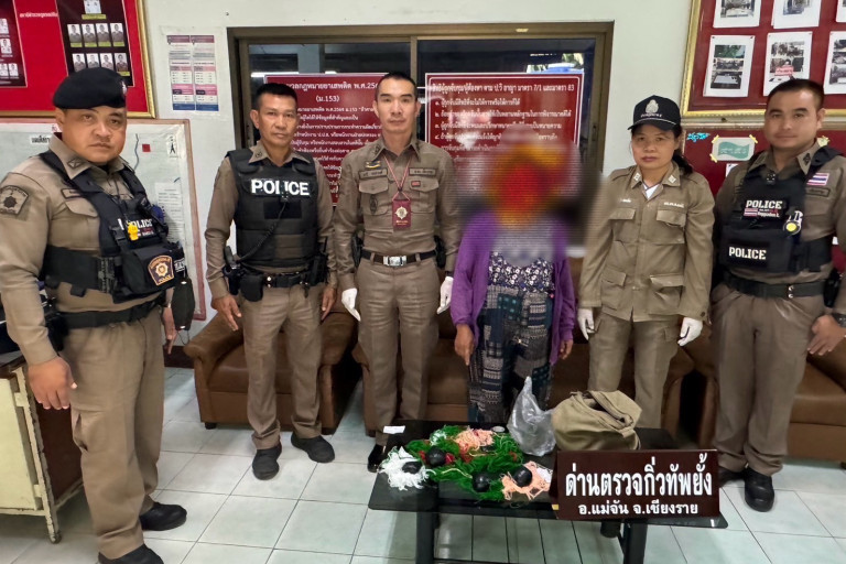 เชียงราย จับแม่เฒ่าชาวเขาคาด่านตรวจกิ่วทัพยั้ง แม่จัน ยึดยาบ้า ฝิ่น ตรวจหาสารเสพติดในร่างกายพบมีมอร์ฟีนในร่างกายด้วย