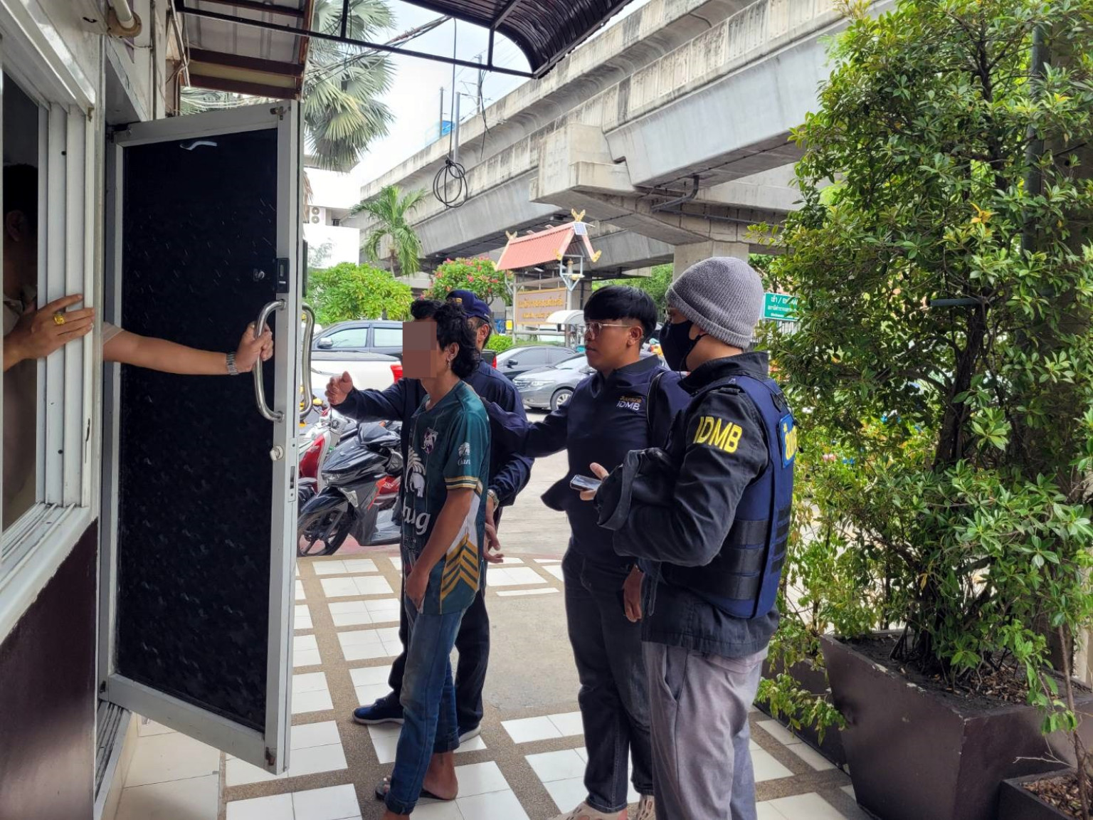 เจ้าหน้าที่ตำรวจจึงได้นำตัวผู้ต้องหามายัง สน.มักกะสัน เพื่อมาสอบปากคำเกี่ยวกับเหตุการณ์ในคดี และยังพบว่าผู้ก่อเหตุเพิ่งเสพยาเสพติดให้โทษประเภท 1 (เมทแอมเฟตามีน) มาจำนวน 2 เม็ด จึงได้ทำการตรวจพิสูจน์และยืนยันว่า พบสารเสพติดให้โทษประเภท 1 (เมทแอมเฟตามีน) ในร่างกาย จริง โดยรับว่าเพิ่งเสพยาบ้ามาจำนวน 2 เม็ด เมื่อ 2 วันที่ผ่านมาจริง เจ้าหน้าที่ตำรวจจึงได้ควบคุมตัวนายประพร นำส่ง พงส.สน.มักกะสัน เพื่อดำเนินคดีในข้อหา “ทำให้ผู้อื่นเกิดความกลัว หรือความตกใจ โดยการขู่เข็ญฯ” พร้อมทั้งได้ดำเนินคดีอาญาเพิ่มเติมในข้อหา “เสพยาเสพติดให้โทษประเภท 1 (เมทแอมเฟตามีน) โดยผิดกฎหมาย” อีกกระทงหนึ่ง นำส่ง พงส.สน.มักกะสัน เพื่อดำเนินการตามกฎหมายต่อไป
