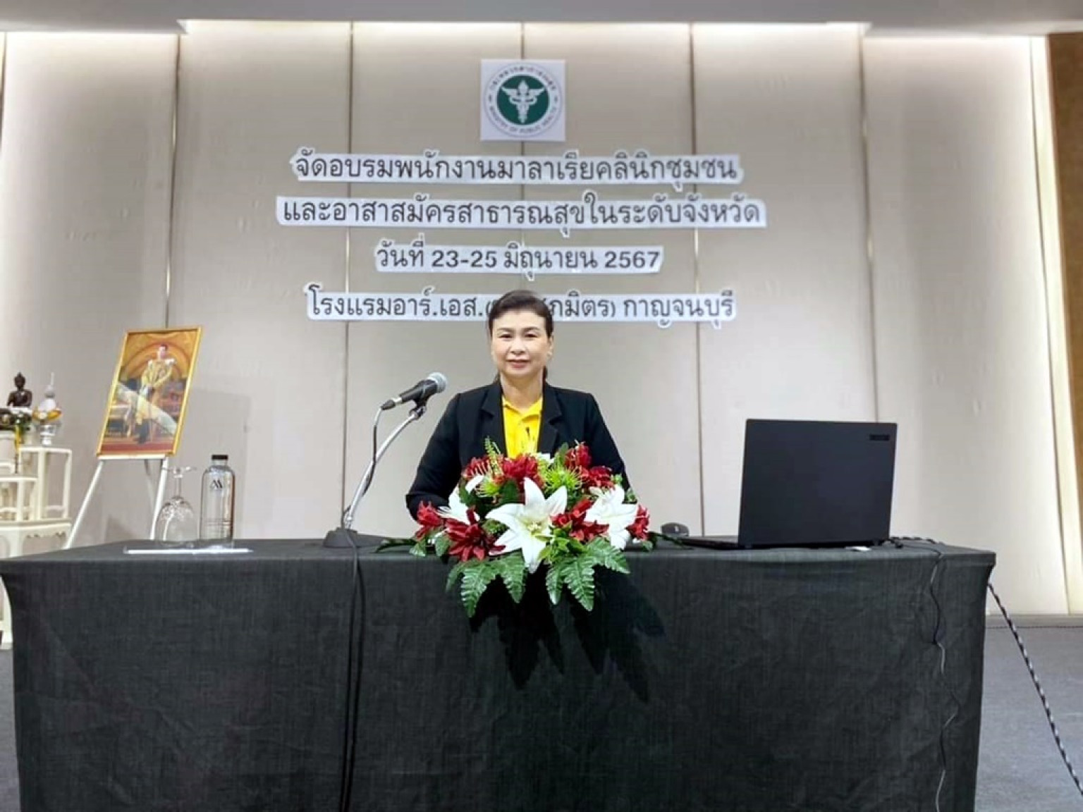 วันที่ 24 มิ.ย.67 ทึ่โรงแรมราชศุภมิตร อำเภอเมืองกาญจนบุรี จังหวัดกาญจนบุรี นายแพทย์สาธารณสุขจังหวัดกาญจนบุรี มอบหมายให้ หัวหน้ากลุ่มงานควบคุมโรคติดต่อ สำนักงานสาธารณสุขจังหวัดกาญจนบุรี จัดอบรมพนักงานมาลาเรียคลินิกชุมชนและอาสาสมัครสาธารณสุขในระดับจังหวัด