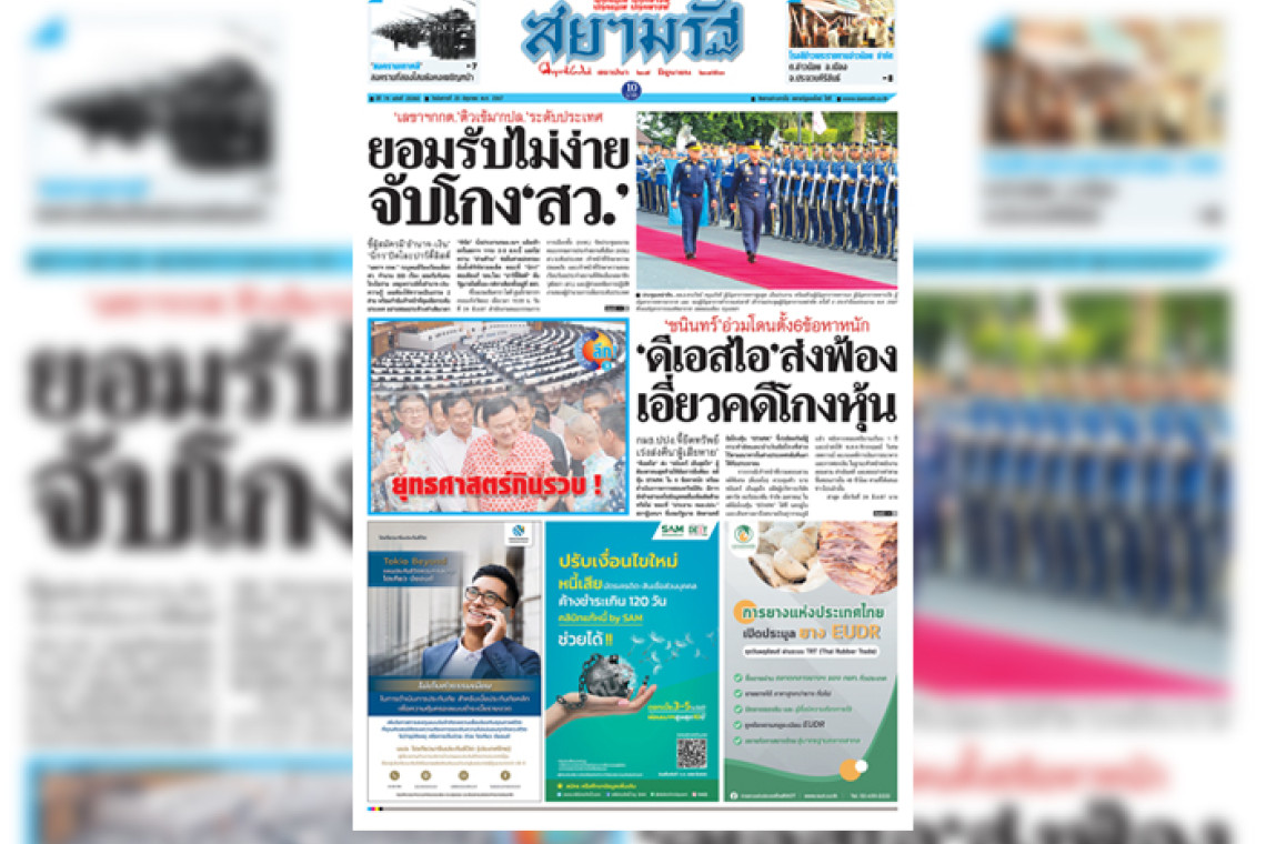หน้า 1 หนังสือพิมพ์สยามรัฐรายวัน ฉบับวันอังคารที่ 25 มิถุนายน 2567
