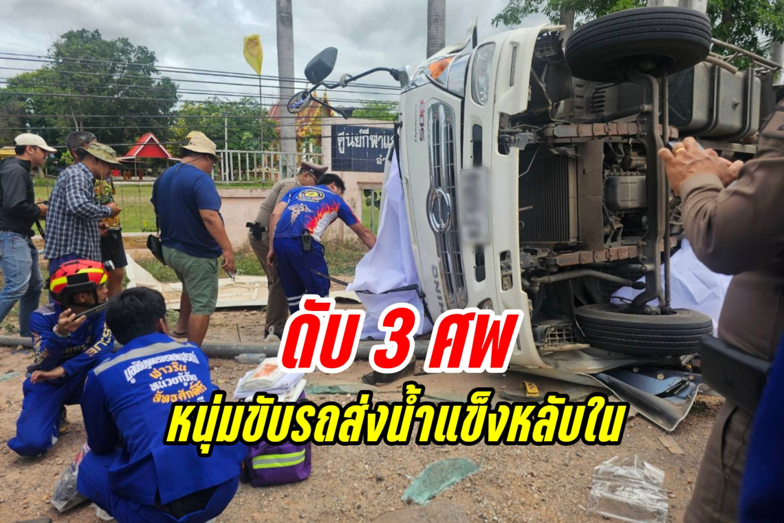 เมื่อเวลา 11.30 น. วันที่ 25 มิ.ย.67 พ.ต.ท.ฤทธิพล พลเสน สารวัตรเวรสภ ทุ่งหลวง อ.ปากท่อ จ.ราชบุรี ได้รับแจ้งเหตุรถหกล้อส่งน้ำแข็งพลิกคว่ำมีผู้เสียชีวิต 3 ราย เหตุเกิดที่บริเวณโค้งหน้าวัดทุ่งหลวง หมู่ 2 ต.ทุ่งหลวง จึงรายงานให้ พ.ต.อ.นฤดม มารศรี รองผบก.ภ.จ.ราชบุรี นายนคร ศรีวิลัย นายอำเภอปากท่อ และพ.ต.อ.กอบโชค เล็กตระกูล ผกก.สภ.ทุ่งหลวง ได้รับทราบก่อนจะเดินทางไปตรวจสอบพร้อมแพทย์เวรโรงพยาบาลปากท่อและเจ้าหน้าที่มูลนิธิปฐมบรมราชานุสรณ์ ราชบุรี ในที่เกิดเหตุพบรถบรรทุกหกล้อตู้ทึบ ยี่ห้อ ฮีโน่ สีขาว หมายเลขทะเบียน 83-xxxx ราชบุรี สภาพรถพลิกตะแคงข้างอยู่ริมถนน สภาพพังยับเยิน ตรวจสอบภายในซากรถพบผู้เสียชีวิตเป็นชาย 2 ราย ทราบชื่อคือ นายคมสันต์ อายุ 39 ปี เป็นคนขับรถ นาย ลิน นี ทุย ชาวเมียนมาร์ อายุ 20 ปี นอกจากที่บริเวณซุ้มล้อ พบศพเป็นชายอีก 1 รายไม่ทราบชื่อเป็นชาวเมียนมาร์ ใกล้กันพบต้นเสาไฟฟ้าส่องสว่างถูกชนจนขาดกระเด็น