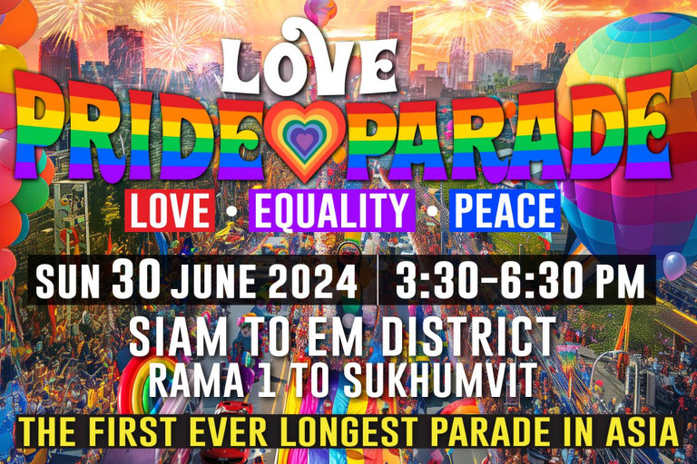 ภาครัฐผนึกภาคีภาคเอกชนกว่า 100 องค์กร ขอเชิญร่วมบันทึกประวัติศาสตร์เฉลิมฉลองเดือนแห่งเทศกาลไพรด์ของประเทศไทยหลังกฏหมายสมรสเท่าเทียมผ่านสภาอย่างเป็นทางการ ในงาน LOVE PRIDE PARADE 2024 กับขบวนพาเหรดแห่งความภาคภูมิใจระยะทาง 6 กิโลเมตร ยาวที่สุดในเอเชีย วันที่ 30 มิถุนายน นี้ สนามศุภชลาชัย ถึง อุทยานเบญจสิริ ถนนสุขุมวิท