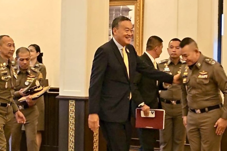 เมื่อเวลา 15.00 น. วันที่ 26 มิ.ย. 2567 ที่ห้องประชุมศรียานนท์ ชั้น 2 อาคาร 1 สำนักงานตำรวจแห่งชาติ นายเศรษฐา ทวีสิน นายกรัฐมนตรี เป็นประธานการประชุมคณะกรรมการข้าราชการตำรวจ (ก.ตร.) ครั้งที่ 5/2567 โดยก่อนที่นายกฯ จะเดินทางถึง พล.ต.อ.ต่อศักดิ์ สุขวิมล ผู้บัญชาการตำรวจแห่งชาติ (ผบ.ตร.) พร้อมด้วยรอง ผบ.ตร. มารอต้อนรับบริเวณประตูทางเข้า โดยทุกคนมีสีหน้ายิ้มแย้มแจ่มใส และทักทายสื่อมวลชนอย่างอารมณ์ดี