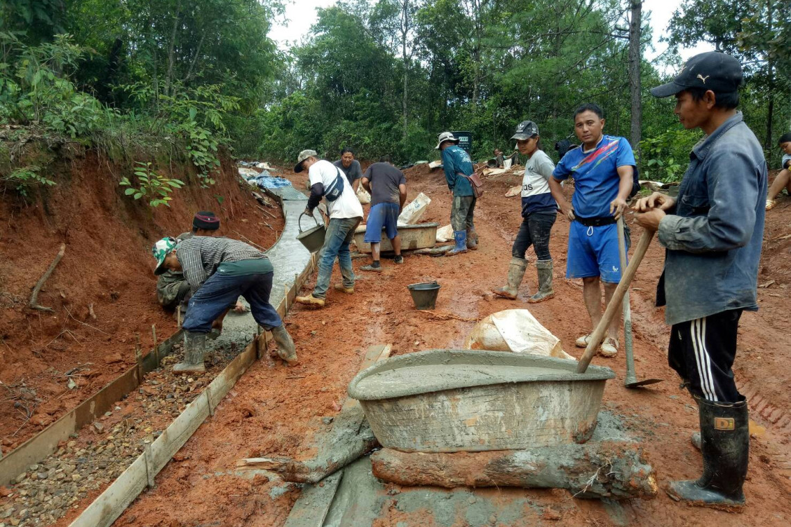 ซึ่งการก่อสร้างถนนคอนเกรีตเสริมเหล็กระบบถนน 2 เลนส์แม้ว ในระยะทางพอประมาณเน้นจุดที่เป็นดินโคลนลากยาว ซึ่งงบประมาณส่วนหนึ่งมาจากกลุ่มคนรักถิ่น และชาวบ้านร่วมกันออกตามกำลังศรัทธาที่สามารถจะทำได้ และมีทหาร และผู้ใจบุญที่ทราบข่าวมาร่วมบริจาคตั้งแต่ 100 บาทไปจนถึง 1,000 บาท หลังมีวัสดุอุปกรณ์พร้อม ชาวบ้านทั้งชายและหญิงจึงได้ลงมือทำกันเอง โดยมีช่างวิศวะจากที่อื่นมาให้คำแนะนำ โดยก่อนที่ชาวบ้านจะลงมือทำ เคยได้ไปสอบถามทางหน่วยงานที่รับผิดชอบในเส้นทางถึงความคืบหน้าโครงการ แต่ได้รับคำตอบว่าภายในระยะ 5 ปีโครงการน่าจะถึงบ้านห้วยปูเลย หลังได้รับฟังชาวบ้านทนรอไม่ไหวจึงดำเนินการก่อสร้างถนนก่อนในช่วงระยะทางที่เป็นปัญหาหนักยากต่อการสัญจร