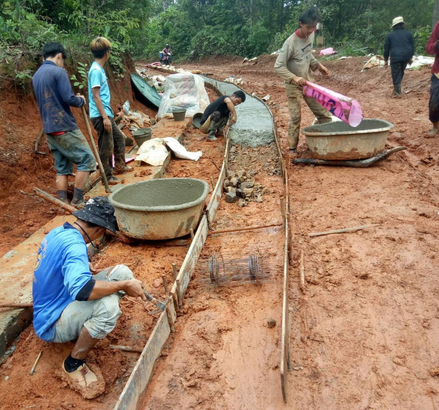 วันที่ 26 มิ.ย 67 ผู้สื่อข่าวรายงาน ว่า เพจสมาชิกของกลุ่มคนรักถิ่นรายหนึ่งได้โพสต์ภาพการก่อสร้างถนนเทคอนกรีตเสริมเหล็กแบบ 2 เลนส์แม้ว ซึ่งมีชาวบ้านหญิงชายจำนวนหลายสิบคนช่วยกันทำท่ามกลางถนนที่เละเป็นดินโคลน พร้อมเขียนข้อความว่า “พลังบวกบ้านห้วยปูเลย..และความสามัคคีทุกอย่างผ่านไปด้วยดี “