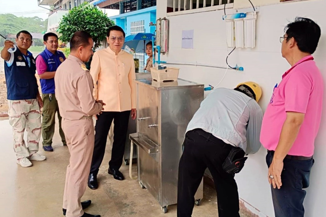 วันที่ 27 มิ.ย.67 ผู้สื่อข่าวรายงานว่า พ.จ.อ.อนุสิทธิ์ บัวหุ่ง นายอำเภอคำเขื่อนแก้ว จังหวัดยโสธร พร้อมด้วย ปลัดอำเภอ เจ้าหน้าที่การไฟฟ้าส่วนภูมิภาคอำเภอคำเขื่อนแก้ว ผู้อำนวยการกองช่าง เทศบาลตำบลคำเขื่อนแก้ว เจ้าหน้าที่ปกครอง และสมาชิกร้อย.อส.อ.คำเขื่อนแก้ว ที่ 7 ลงพื้นที่ตรวจสอบตู้น้ำเย็นภายในโรงเรียน ในเขตเทศบาลตำบลคำเขื่อนแก้ว เพื่อป้องกันอันตรายจากเหตุไฟฟ้าดูดนักเรียนประกอบด้วย 1.โรงเรียนอนุบาลลุมพุก (วันครู 2503) พบว่า มีเครื่องทำน้ำเย็นแต่ชำรุดไม่ได้ใช้งาน 2.โรงเรียนคำเขื่อนแก้วชนูปถัมภ์ พบว่า มีเครื่องทำน้ำเย็น (พลาสติก) ใช้งานได้ตามปกติกระจายตามจุดอาคารต่างๆ 3.โรงเรียนคำเขื่อนแก้วมีเครื่องทำน้ำเย็น (แบบสแตนเลส) ใช้งานได้ตามปกติ แต่ไม่ได้เสียบปลั๊กใช้ไฟ
