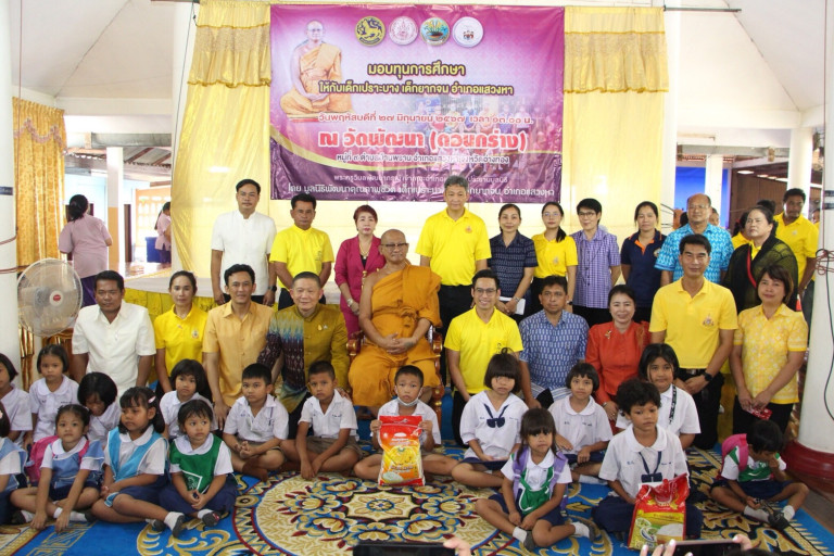 วันที่ 28 มิถุนายน 2567 ณ วัดพัฒนา (ดอกนกร่าง) ต.บ้านพราน อ.แสวงหา จ.อ่างทอง นายพิริยะ ฉันทดิลก ผู้ว่าราชการจังหวัดอ่างทอง ประธานในพิธีมอบทุนการศึกษามูลนิธิพัฒนาคุณภาพชีวิตเด็กเปราะบางและเด็กยากจน อำเภอแสวงหา จังหวัดอ่างทอง โดยมีพระครูวิมลพัฒนาภรณ์ เจ้าคณะอำเภอแสวงหา เจ้าอาวาสวัดพัฒนา (ดอนกร่าง) พร้อมด้วย นายกรวีร์ ปริศนานันทกุล สมาชิกสภาผู้แทนราษฎรจังหวัดอ่างทอง นายนรินทร์ อร่ามโชติ นายอำเภอแสวงหา นายวินัย บุญศรี นายก อบต.บ้านพราน ร่วมมอบทุนการศึกษาแก่นักเรียนโรงเรียนดอนกร่าง ตำบลวังน้ำเย็น อำเภอแสวงหา จังหวัดอ่างทอง จำนวน 141 ทุนๆ ละ 1,000 บาท เป็นเงินทั้งหมด 141,000 บาท พร้อมสนับสนุนอาหารกลางวันแก่เด็กนักเรียน เพื่อให้เด็กนักเรียนได้อิ่มท้อง มีสมาธิที่ดี ส่งผลต่อการเรียนที่ดี และ ทุนการศึกษาให้เป็นค่าใช้จ่ายที่จำเป็นในการศึกษาเล่าเรียน ลดภาระค่าใช้จ่ายของผู้ปกครองอีกทางหนึ่งด้วย