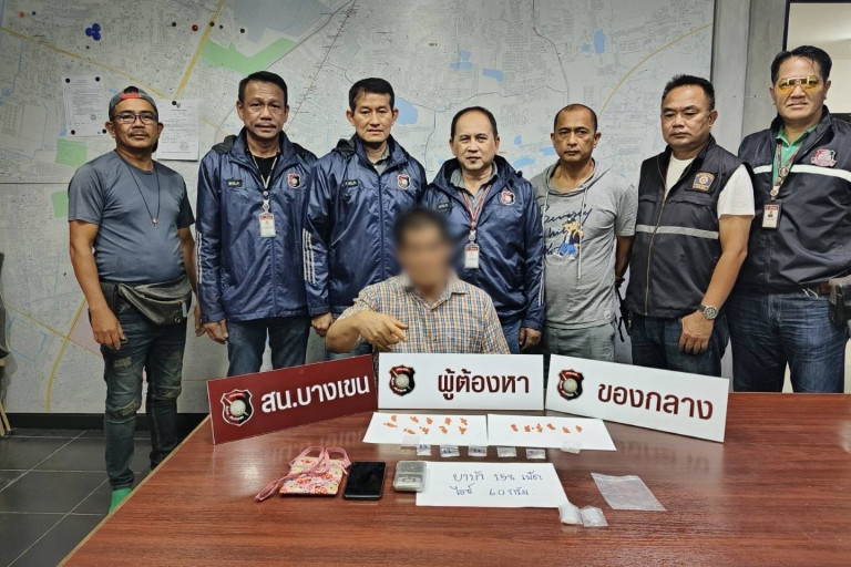 วันที่ 27 มิ.ย.67 พ.ต.อ.อนันต์ วรสาตร์ ผกก.สน.บางเขน พร้อมด้วย พ.ต.ท.โกศลปิยะ สีมา รอง ผกก.สส., พ.ต.ท.พรชัย ว่องประเสริฐการ สว.สส.,พ.ต.ต.ยุรนันท์ เพชรมณี สว.สส. และเจ้าหน้าที่ตำรวจฝ่ายสืบสวน สน.บางเขน ร่วมกันจับกุมนายสมชาย อายุ 47 ปี พร้อมของกลางยาบ้า 158 เม็ด, ยาไอซ์ 6.0 กรัม โดยจับกุมที่บ้านพักชุมชนหลังกรมวิทยาศาสตร์ทหารบก แขวงเสนานิคม เขตจตุจักร กทม. ตามหมายจับ ศาลอาญาที่ 8/2565 ลงวันที่ 8 มกราคม 2565