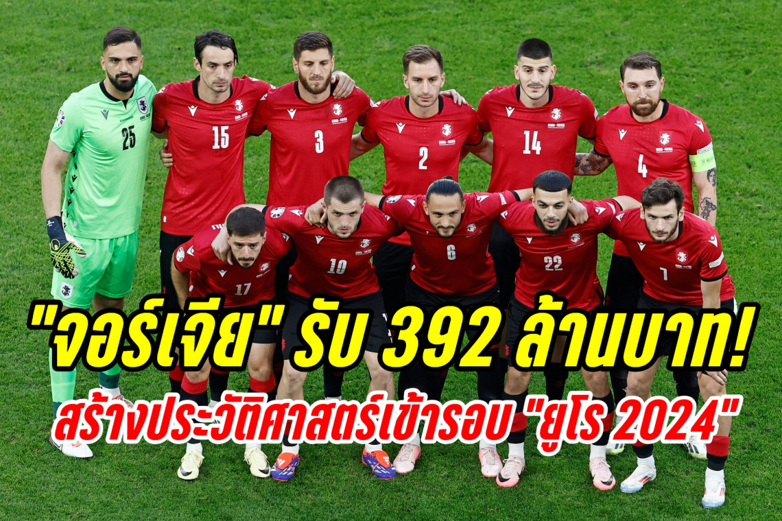 เมื่อวันที่ 28 มิ.ย.67 สำนักข่าวต่างประเทศ รายงานว่า ทีมชาติ จอร์เจีย รับทรัพย์ถ้วนหน้า 30 ล้านลารี (392 ล้านบาท) เป็นรางวัลหลังสร้างประวัติศาสตร์ทะลุเข้าสู่รอบน็อคเอาท์ หรือรอบ 16 ทีมสุดท้ายของศึกยูโร 2024 ได้สำเร็จ