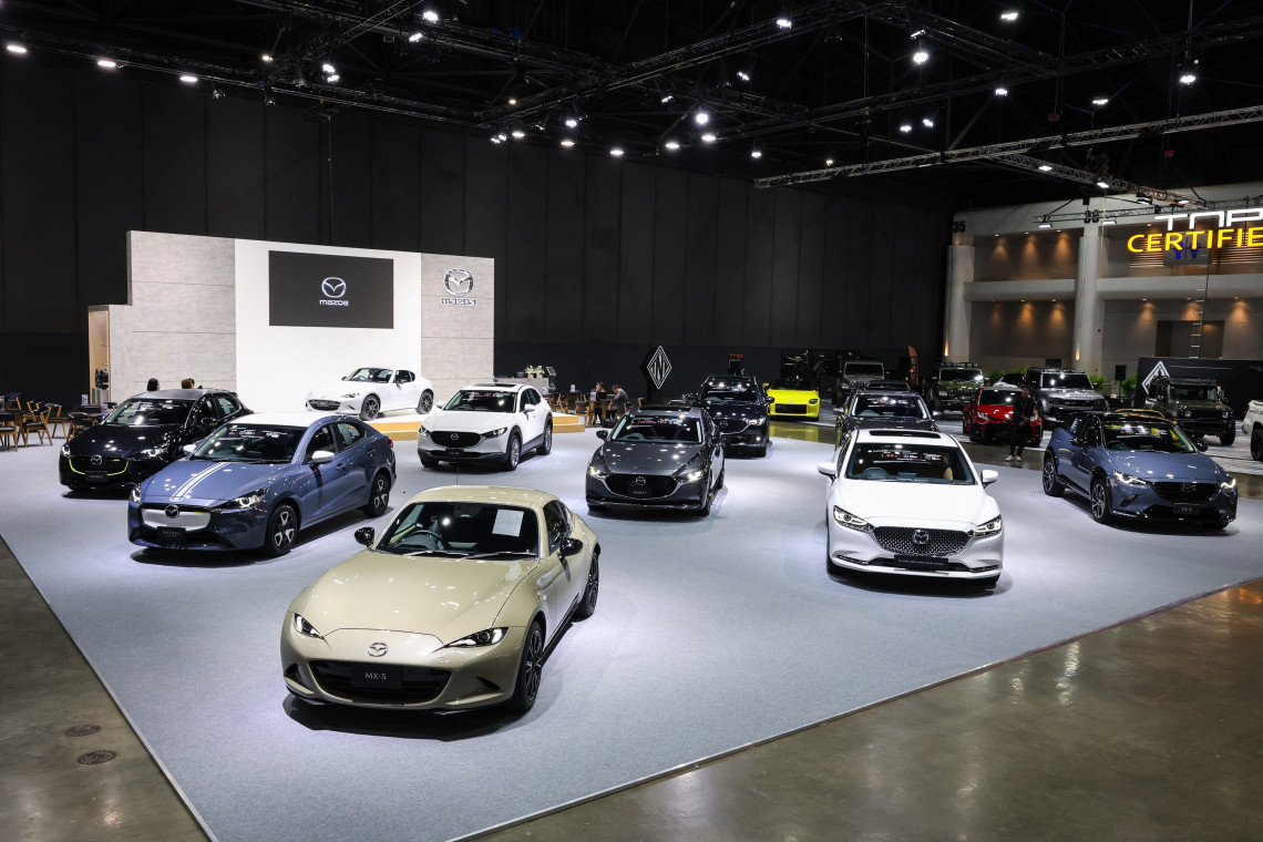 มาสด้ายกทัพยานยนต์สายพันธุ์สปอร์ตภายใต้เทคโนโลยีสกายแอคทีฟทุกรุ่นออกประชันโฉมในงานบางกอกออโต้ซาลอน 2024 ชูไฮไลท์พิเศษสุดกับ New Mazda MX-5 รถสปอร์ตโรดสเตอร์แบรนด์ไอคอนยอดนิยมที่ได้รับการพัฒนาปรับปรุงใหม่ มาพร้อมสีเทา แอโร เกรย์ สีใหม่ล่าสุด และ Mazda6 20th Anniversary Edition รถสปอร์ตซีดานระดับไฮเอนด์ กับสีขาว โรเดียม ไวท์ ที่เปิดให้ลูกค้าและแฟนพันธุ์แท้มาสด้าได้จับจองเป็นเจ้าของ จำนวนจำกัดเพียง 100 คัน ในประเทศไทยเท่านั้น พร้อมทัพรถยนต์มาสด้าทุกรุ่นที่ตกแต่งพิเศษมาจัดแสดงให้ลูกค้าได้สัมผัสอย่างใกล้ชิด พร้อมรับข้อเสนอสุดเอ็กซ์คลูซีฟเฉพาะภายในงานฯ ตั้งแต่วันนี้ไปจนถึงวันที่ 30 มิ.ย. 67 ดอกเบี้ยต่ำสุด 0% ผ่อนนานสูงสุด 84 เดือน หรือส่วนลดสูงสุด 130,000 บาท หรือโปรแกรมคุ้มครองและดูแลรถ MUS 5 ปี เมื่อจองรถในงาน 3,000 บาท และออกรถภายในเดือน มิ.ย. 67 รับฟรี ลำโพงบลูทูธ JBL รุ่น FLIP ESSENTIAL 2 มูลค่า 2,390 บาท ที่ ชาเลนเจอร์ฮอล์ 3 อิมแพ็ค เมืองทองธานี