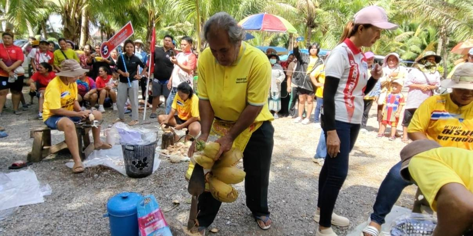 ไฮไลท์ของการจัดแข่งขันกีฬาพื้นบ้านโดยใช้ลิงขึ้นมะพร้าวแข่งกันจำนวนลูกมะพร้าวเท่ากันนำไปแขวนไว้บนต้นมะพร้าวแล้วให้ลิงปั่นลูกมะพร้าวลงมาเมื่อเมื่อถึงพื้นก็ให้คนเก็บนำไปปอกเสร็จแล้วก็ใช้กระเทาะกะลามะพร้าวเมื่อได้เนื้อมะพร้าวแล้วก็เอามาผิวทำเป็นมะพร้าวขาวแข่งกันอย่างสนุกสนาน โดยมีกองเชียร์แต่ละหมู่เข้ามาเชียร์กันอย่างสนุกสนาน ผลการแข่งขันหมู่ที่ 4 บ้านละหาร ชนะเป็นที่ 1 สร้างความสนุกและดีใจแก่ชาวบ้านตำบลกำเนิดนพคุณอย่างสนุก
