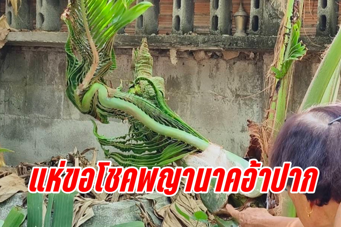 “ศรีสะเกษ” ฮือฮา แห่ขอโชคลาภพญานาคอ้าปาก ต้นมะพร้าวแปลกแทงยอดข้างสิมเก่าอายุกว่าร้อยปี