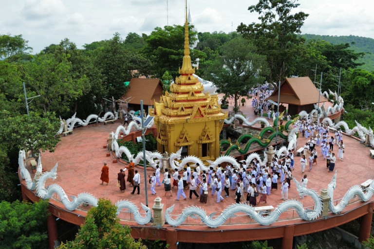 ญาติธรรมกว่า 700 คน ร่วมเดินทางท่องเที่ยวเชิงนิเวศน์ศึกษาพระธรรม พร้อมใจเวียนเทียนรอบองค์พระปฏิมากรพระพรหมภูมิปาโล ก่อนร่วมถวายหลอดไฟและถวายจตุปัจจัยเพื่อทำนุบำรุงในการเผยแผ่พระพุทธศาสนา