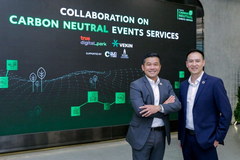 นายฐนสรณ์ ใจดี กรรมการผู้จัดการใหญ่ ทรู ดิจิทัล พาร์ค กล่าวว่า “ทรู ดิจิทัล พาร์ค มุ่งต่อยอดภารกิจสำคัญในการขับเคลื่อนและสนับสนุนการเติบโตของสตาร์ทอัพ ด้วยความแข็งแกร่งของระบบนิเวศสมบูรณ์แบบครบวงจรสำหรับสตาร์ทอัพและผู้ประกอบการเทค ล่าสุดจับมือกับ VEKIN สตาร์ทอัพสัญชาติไทยที่มีการพัฒนานวัตกรรมความยั่งยืนและสิ่งแวดล้อมอย่างต่อเนื่อง นำ Climate Technology ยกระดับการให้บริการพื้นที่จัด Event ด้วย Carbon Neutral Events Service นับเป็นครั้งแรกในประเทศไทยของพื้นที่จัดอีเวนต์ที่ผนวกบริการครบวงจรเพื่อช่วยให้การปล่อยก๊าซคาร์บอนจากการจัดงานอีเวนต์สุทธิเป็นศูนย์ (Carbon Neutral Event) ซึ่งความร่วมมือในครั้งนี้ เติมเต็มความตั้งใจของ ทรู ดิจิทัล พาร์ค ในการสนับสนุนการเติบโตของสตาร์ทอัพ พร้อมสร้างโอกาสการมีส่วนร่วมของทุกภาคส่วนในการแก้ไขปัญหาวิกฤตสภาพอากาศ เพื่อโลกที่ยั่งยืน อีกทั้งยังเป็นการเสริมสร้างศักยภาพการแข่งขันของอุตสาหกรรมไมซ์ไทยในการรองรับการจัดอีเวนต์แบบ Carbon Neutral Event ที่ตอบโจทย์ด้านความยั่งยืนของหน่วยงานหรือองค์กรต่างๆ ทั่วโลก