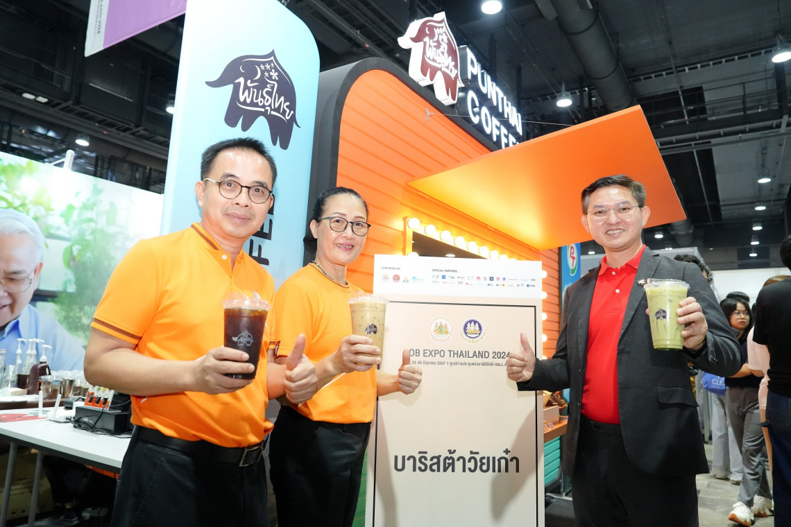 บริษัท กาแฟพันธุ์ไทย จำกัด มุ่งมั่นยกระดับคุณภาพชีวิตที่ดีของคนไทย เชื่อมโอกาสให้ทุกคนได้ ‘อยู่ดี มีสุข’ อย่างเสมอภาค เปิดรับสมัคร บาริสต้าวัยเก๋า นักชงกาแฟรุ่นใหญ่ไม่จำกัดเพศ สนับสนุนการสร้างอาชีพ สร้างรายได้ให้กับผู้สูงวัย พร้อมสวัสดิการมั่นคง ในมหกรรมหางานสร้างรายได้ของประเทศไทย Job Expo Thailand 2024 จัดโดย กรมการจัดหางาน กระทรวงแรงงาน ณ ศูนย์การประชุมแห่งชาติสิริกิติ์