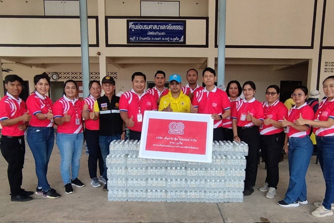 ยังไม่ทันเปิดตัวอย่างเป็นทางการที่ภูเก็ต แต่ “โก โฮลเซลล์” (GO Wholesale) ศูนย์ค้าส่งวัตถุดิบอาหาร ภายใต้การดำเนินงานของบริษัท เซ็นทรัล ฟู้ด โฮลเซลล์ จำกัด ในเครือเซ็นทรัล รีเทล รวมพลังพนักงานจิตอาสาในพื้นที่ ขนน้ำดื่มแบรนด์ “ยิ้ม” ไปช่วยเหลือผู้ประสบภัยน้ำท่วม โดยมี นายธรรมรงค์ ช่วยอักษร ปลัดอำเภอกะทู้ เป็นผู้รับมอบ ณ ที่ว่าการอำเภอกะทู้ เพื่อนำไปแจกจ่ายให้แก่ผู้ที่ได้รับผลกระทบจากกรณีเกิดเหตุน้ำท่วมฉับพลันในพื้นที่จังหวัดภูเก็ต เนื่องจากฝนตกหนัก จนมีการประกาศเขตพื้นที่ประสบสาธารณภัย 2 อำเภอ 7 ตำบล 41 หมู่บ้าน 4 ชุมชน 740 ครัวเรือน ประชาชนได้รับผลกระทบ 1,468 คน