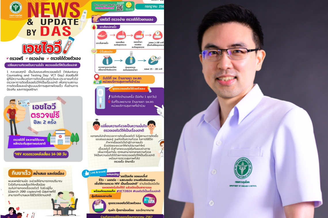 กรมควบคุมโรค เชิญชวนทุกคน เปลี่ยนความกังวลเป็นความมั่นใจ ด้วยการตรวจเอชไอวีให้เป็นเรื่องปกติ เหมือนการตรวจสุขภาพทั่วไป ตรวจฟรี ตรวจง่าย ตรวจได้ด้วยตัวเอง ตรวจเอชไอวีเพื่อรู้สถานะ และป้องกันการถ่ายทอดเชื้อไปสู่ผู้อื่น หากพบว่าติดเชื้อเอชไอวี สามารถเข้าสู่ระบบการรักษาด้วยยาต้านไวรัสฟรี ครอบคลุม ทุกสิทธิการรักษา และเน้นย้ำ กินยาเร็ว สม่ำเสมอ พบแพทย์ตามนัดและติดตามการรักษาอย่างต่อเนื่อง จะช่วยให้ผู้ติดเชื้อสามารถกดปริมาณไวรัสในกระแสเลือดให้เหลือน้อย จนไม่ถ่ายทอดเชื้อเอชไอวีไปยังผู้อื่น นำไปสู่การมีสุขภาพที่ดี สามารถทำงานและใช้ชีวิตได้ตามปกติ สามารถสอบถามรายละเอียดเพิ่มเติมได้ที่ 1422 สายด่วนกรมควบคุมโรค กรมควบคุมโรคห่วงใย อยากเห็นคนไทยมีสุขภาพดี