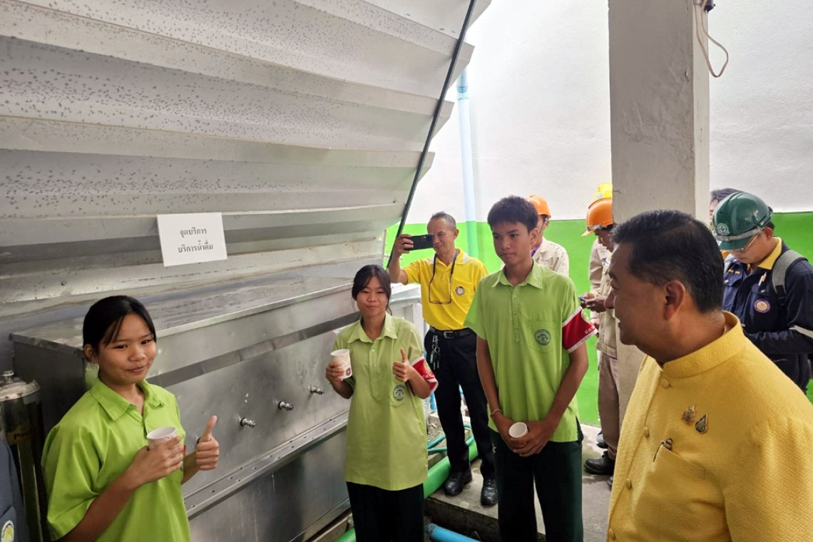 เมื่อวันที่ 1 ก.ค.67 นายทรงพล ใจกริ่ม ผู้ว่าราชการจังหวัดร้อยเอ็ด พร้อมด้วย นายธรณิศ เทพแพงตา หัวหน้าสำนักงานป้องกันและบรรเทาสาธารณภัยจังหวัดร้อยเอ็ด นายบรรจง โฆษิตจิรนันท์ นายกเทศมนตรีเมืองร้อยเอ็ด ผู้นายปภังกร เกียรติศักดากุล รองผู้จัดการการไฟฟ้าส่วนภูมิภาค(เทคนิค)สาขาเมืองร้อยเอ็ และหน่วยงานที่เกี่ยวข้อง ลงพื้นที่ตรวจสอบมาตรฐานการติดตั้งตู้กดน้ำดื่มภายในสถานศึกษาในพื้นที่เทศบาลเมืองร้อยอ็ด เพื่อยกระดับความปลอดภัยและป้องกันอันตรายที่อาจเกิดขึ้นกับนักเรียน ตามข้อสั่งการและข้อห่วงใจของปลัดกระทรวงมหาดไทย