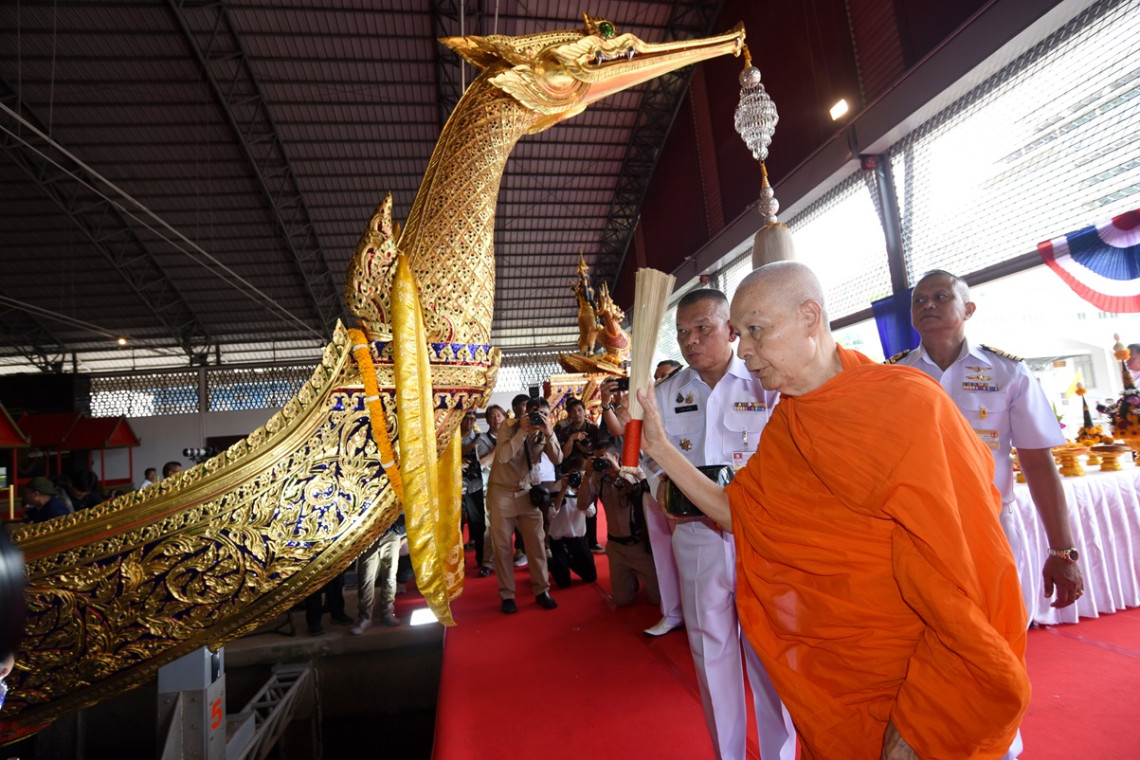 ภายหลังจากเจ้าพนักงานอ่านโองการเสร็จ ผู้บัญชาการทหารเรือ ได้เริ่มประกอบพิธีสงฆ์ จุดธูปเทียน บูชาพระรัตนตรัย พระสงฆ์ให้ศีล เจริญพระพุทธมนต์ สวดอนุโมทนา ประพรมน้ำพระพุทธมนต์ จากนั้นผู้บัญชาการททารเรือ เจิมเรือ ปิดทอง ผูกผ้าสี คล้องพวงมาลัย โปรยข้าวตอกดอกไม้ เพื่อบวงสรวง แม่ย่านางเรือ และรำบวงสรวงโดยกรมศิลปากร เป็นอันเสร็จสิ้นพิธี