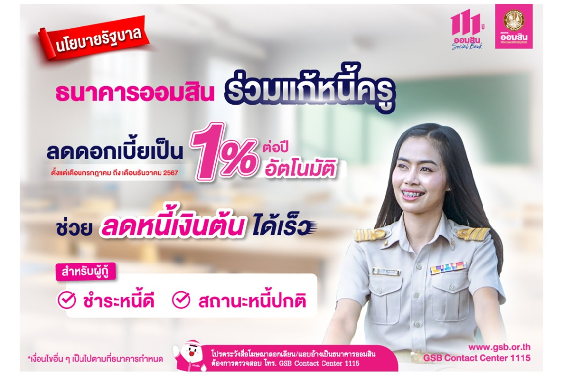 โดยล่าสุดธนาคารออมสิน ได้ออกมาตรการช่วยเหลือเพิ่มเติมตามข้อสั่งการของรัฐบาล ประกาศลดดอกเบี้ยสินเชื่อกลุ่มครูเป็น 1% ต่อปี สำหรับลูกหนี้ผ่อนชำระดีของสินเชื่อโครงการสวัสดิการเงินกู้สมาชิก ช.พ.ค. - ช.พ.ส. และโครงการเกื้อกูลผู้ประกอบวิชาชีพทางการศึกษา เป็นระยะเวลา 6 เดือน (ก.ค. - ธ.ค. 2567) โดยเป็นการลดดอกเบี้ยอัตโนมัติไม่ต้องลงทะเบียนแจ้งความประสงค์ และดอกเบี้ยส่วนที่ได้ลดเพิ่มเติมจะถูกนำไปตัดเงินต้นทำให้หมดหนี้เร็วขึ้น ทั้งนี้ เพื่อช่วยบรรเทาความเดือดร้อนแก่ลูกหนี้กลุ่มครูและบุคลากรทางการศึกษาที่เป็นลูกหนี้ประวัติการผ่อนชำระดี มีสถานะลูกหนี้ปกติ หลังจากที่ก่อนหน้านี้ธนาคารได้ปรับลดดอกเบี้ยของแต่ละโครงการลง 0.5%, 0.75% และ 1% ต่อปีตามเงื่อนไข โดยคาดว่าจะมีลูกหนี้ได้รับประโยชน์จากการปรับอัตราดอกเบี้ยครั้งนี้ จำนวนกว่า 230,000 ราย และลดดอกเบี้ยรวมปีละ 1,600 ล้านบาท