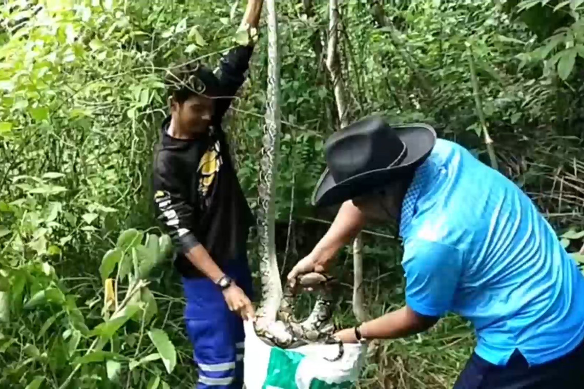 เมื่อไปถึงพบงูเหลือมนอนขดตัวอยู่ในพงหญ้า จึงเข้าทำการใช้อุปกรณ์ในการจับงูเข้าจับทันที โดยใช้เวลานานประมาณ 1 นาทีเศษ ก็สามารถจับงูเหลือมตัวใหญ่ไว้ได้นำมาวัดได้ความยาว 3 เมตร จึงจับใส่กระสอบเตรียมนำไปปล่อยคืนป่าธรรมชาติเพื่อความปลอดภัยของผู้คนต่อไป