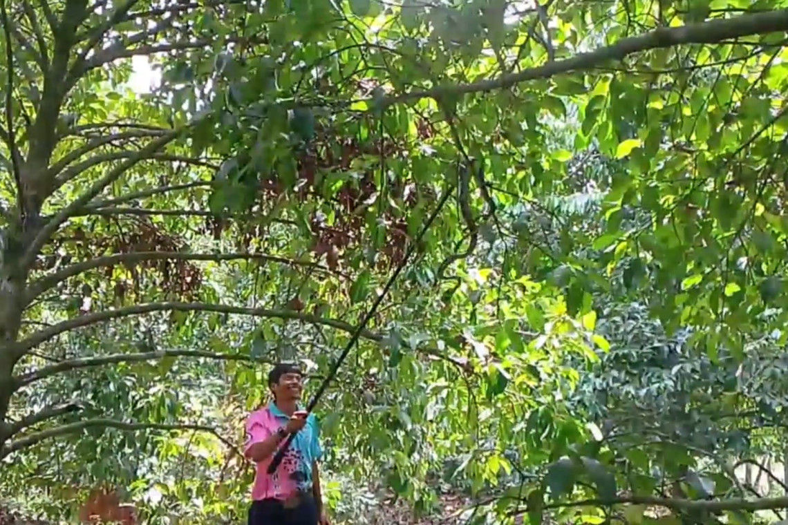ชาวสวนผวา จงอางกำลังเขมือมงูปล้องทองบนต้นมังคุด แจ้งทีมอสรพิษฯมาจับหวั่นเกิดอันตราย