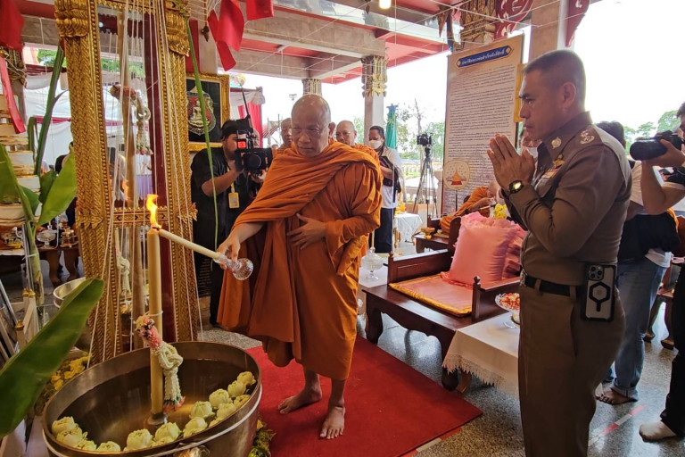 โดยพิธีในวันนี้ ได้รับความเมตตาจาก “สมเด็จมหาวีรวงศ์ (สมเด็จชิน) ผู้ช่วยเจ้าอาวาสวัดราชบพิธสถิตมหาสีมาราม/เลขานุการสมเด็จพระสังฆราช ประธานสงฆ์ ,เป็นองศ์ประธานจุดเทียนชัย เวลา 13.59 น โดยองศ์สมเด็จพระสังฆราช สกลมหาสังฆปรินายก ประทานไฟพระฤกษ์ สำหรับจุดเทียนชัยในพิธีมหาพุทธาภิเษกอย่างยิ่งใหญ่ โดยมีพระเกจิชื่อดัง 69 รูป นั่งปรก 3 ผลัด เช้า-เย็น