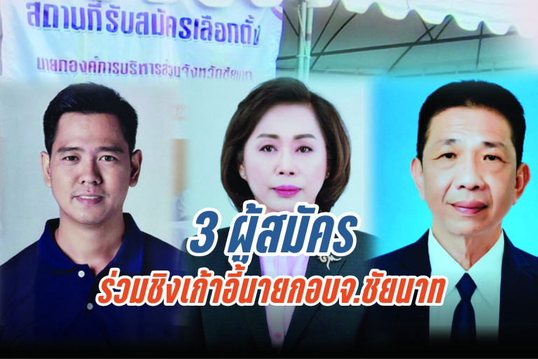 ทั้งนี้หลังจากเปิดรับสมัครปรากฏว่า มีผู้สนใจลงชิงตำแหน่งนายกอบจ.ชัยนาท ทั้งสิ้น 3 ราย ประกอบด้วย 1.นางจิตร์ธนา ยิ่งทวีลาภา อายุ 65 ปี บ้านเลขที่ 689 หมู่ที่ 5 ถนนพหลโยธิน ต.บ้านกล้วย อ.เมืองชัยนาท จ.ชัยนาท 2.นายปัญญา ไทยรัตนกุล อายุ 54 ปี บ้านเลขที่ 435/1 หมู่ที่ 3 ต.หันคา อ.หันคา จ.ชัยนาท และ3.นายสุทธิพจน์ เชื้ออภัยวงษ์ อายุ 36 ปี บ้านเลขที่ 652 หมู่ที่ 3 ต.เขาท่าพระ อ.เมืองชัยนาท จ.ชัยนาท