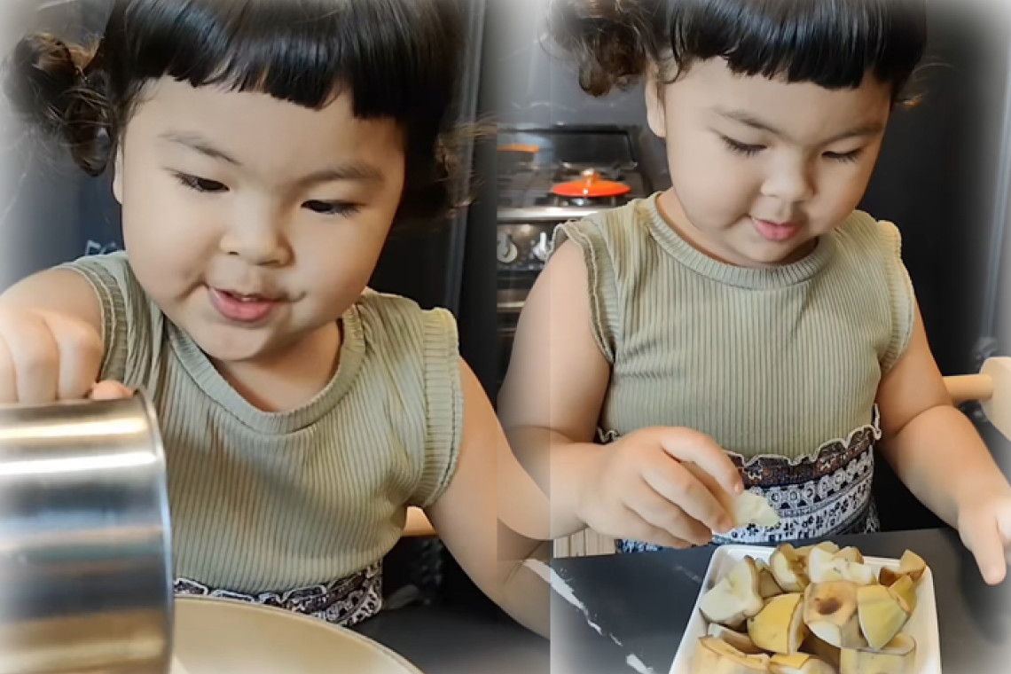 งานนี้หลังจาก “น้องอบเชย” ทำเสร็จคุณย่าก็ได้เข้ามาชิมขนมกล้วยบวชพระ ที่หลานสาวตั้งใจทำแถมยังเอ่ยปากชมด้วยว่าอร่อย หวานมันมาก ทำเอาเชฟตัวน้อยที่ได้ยินถึงกับเขินหนักเลยทีเดียว
