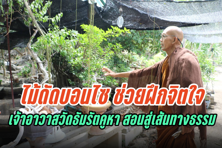 ราชบุรี พระสอนไม้ดัดฝึกจิตสู่เส้นทางธรรม การใช้ไม้ดัดบอนไซช่วยฝึกจิตใจสู่เส้นทางธรรม ของเจ้าอาวาสวัดธัมรัตคูหา อ.โพธาราม จ.ราชบุรี ช่วยให้มีสมาธิดี สงบ มีสมาธิ
