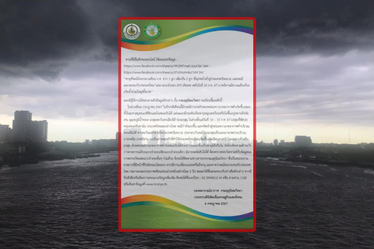 วันที่ 6 ก.ค.67 เพจเฟซบุ๊ก กรมอุตุนิยมวิทยา โพสต์ข้อความระบุว่า...