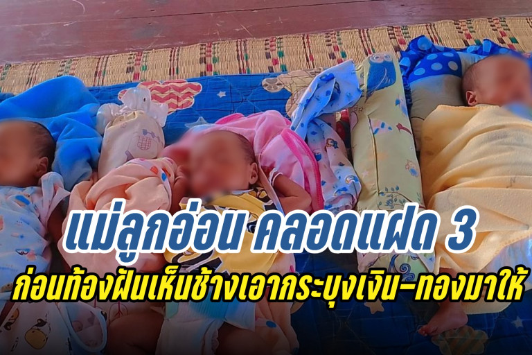 แม่ลูกอ่อน ชาว อ.ละหานทราย จ.บุรีรัมย์ เพิ่งคลอดลูกชายแฝด 3 เผยความฝันมีช้างเอากระบุงเงินกระบุงทองมาให้ก่อนตั้งครรภ์จึงรับไว้ ไม่คิดว่าจะได้ลูกชายแฝดสามดีใจทั้งครอบครัว เชื่อหลังจากนี้จะพบเจอแต่สิ่งดีมีโชคลาภ