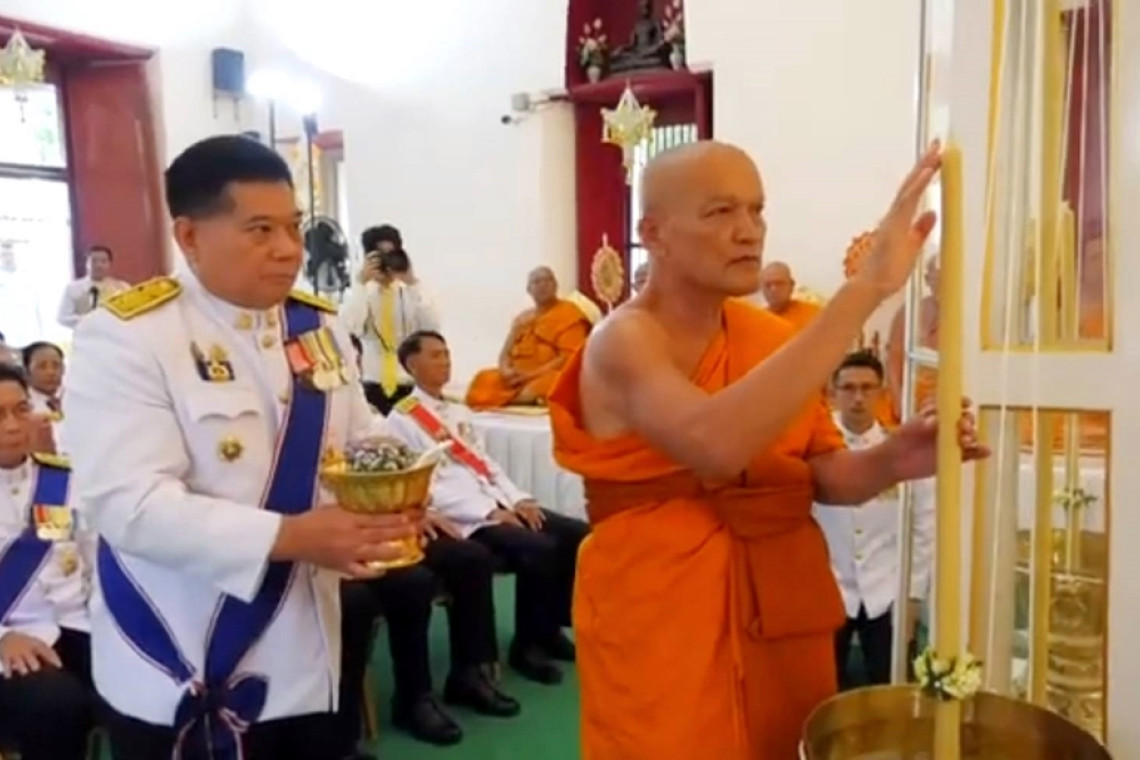 เมื่อวันที่ 7 ก.ค.67 ที่วัดพระบรมธาตุวรวิหาร ตำบลชัยนาท อำเภอเมืองชัยนาท จังหวัดชัยนาท นายนที มนตริวัต ผู้ว่าราชการจังหวัดชัยนาท นำคณะผู้บริหาร ข้าราชการทุกหมู่เหล่า และพสกนิกรชาวชัยนาท ประกอบพิธีเสกน้ำพระพุทธมนต์ศักดิ์สิทธิ์ เนื่องในโอกาสพระราชพิธีมหามงคลเฉลิมพระชนมพรรษา 6 รอบ 28 กรกฎาคม 2567 โดยผู้ว่าราชการจังหวัดชัยนาท จุดธูปเทียนที่หน้าเครื่องสังเวยบูชาฤกษ์ บริเวณหน้าเจดีย์พระบรมธาตุ พราหมณ์ผู้ทำพิธีอ่านโองการบูชาฤกษ์