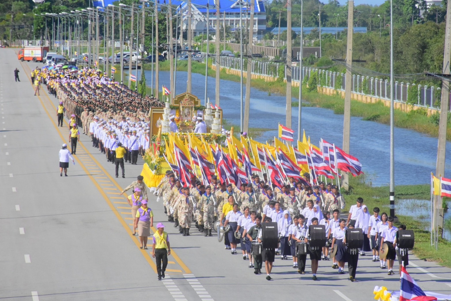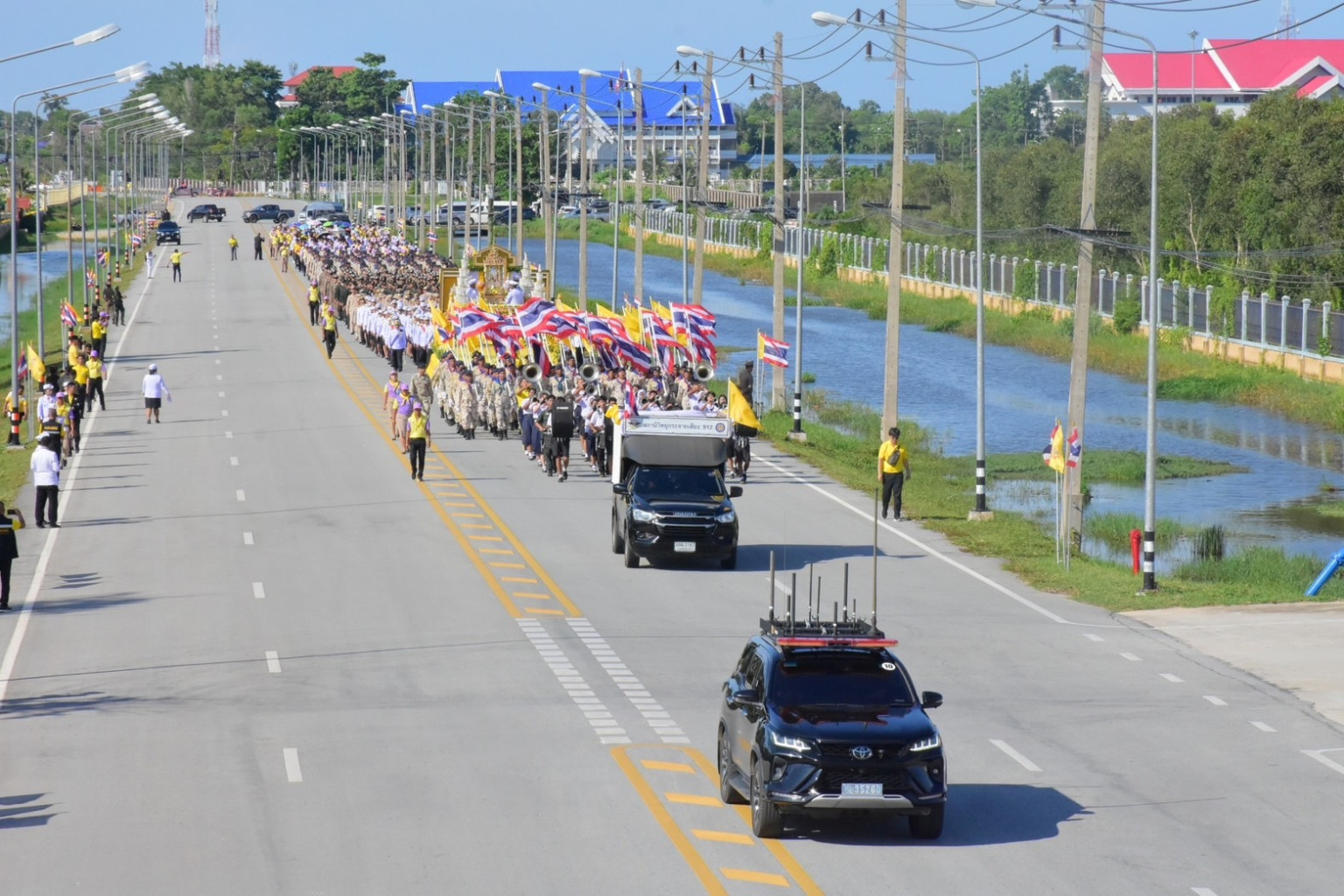 ว่าที่ร้อยตรี ตระกูล โทธรรม ผู้ว่าราชการจังหวัดนราธิวาส พร้อมด้วย ศาล ทหาร ตำรวจ ข้าราชการพลเรือน นักเรียน นักศึกษา อาสาดินแดนจังหวัดนราธิวาส และพสกนิกรจังหวัดนราธิวาส กว่า 3,000 คน ร่วมขบวนอัญเชิญคนโทน้ำพระพุทธมนต์ศักดิ์สิทธิ์มาไว้ยังศาลากลางจังหวัดนราธิวาส แห่งที่ 2 เพื่อรวมพลังแสดงออกถึงความจงรักภักดี และกตัญญูกตเวทิตา ที่พระบาทสมเด็จพระเจ้าอยู่หัว ทรงมีพระเมตตาต่อพสกนิกรชาวจังหวัดนราธิวาส โดยเสด็จพระราชดำเนิน ทรงเปิดศาลากลางจังหวัดนราธิวาส แห่งที่ 2 ถนนศูนย์ราชการ อำเภอเมืองนราธิวาส จังหวัดนราธิวาส เมื่อวันที่ 30 กันยายน 2566 ที่ผ่านมา ขบวนอัญเชิญคนโทน้ำพระพุทธมนต์ศักดิ์สิทธิ์จังหวัดนราธิวาส นำโดยวงโยธวาทิตจากโรงเรียนนราธิวาส ตามด้วยขบวนธงตราสัญลักษณ์ ฯ และธงชาติไทย จำนวน 72 นาย รถบุษบก และขบวนร่วมอัญเชิญ นำโดย ว่าที่ร้อยตรี ตระกูล โทธรรม ผู้ว่าราชการจังหวัดนราธิวาส พร้อมด้วย ผู้พิพากษาหัวหน้าศาลจังหวัดนราธิวาส ผู้พิพากษาศาลเด็กและเยาวชน คณะรองผู้ว่าราชการจังหวัดนราธิวาส อัยการ ทหาร ตำรวจ ข้าราชการพลเรือน จิตอาสาพระราชทาน 904 ข้าราชบริพารพระตำหนักทักษิณราชนิเวศน์ รองประธานแม่บ้านมหาดไทยจังหวัดนราธิวาส กำนัน ผู้ใหญ่บ้าน องค์กรปกครองส่วนท้องถิ่น นักเรียน นักศึกษา อาสาดินแดนจังหวัดนราธิวาส และพสกนิกรชาวจังหวัดนราธิวาส สวมใส่เสื้อสีเหลืองตราสัญลักษณ์ โดยขบวนเคลื่อนมายังภายในศาลากลางจังหวัดนราธิวาส แห่งที่ 2