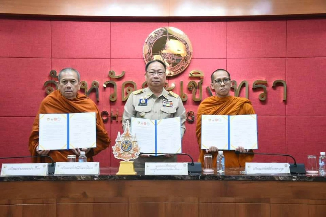 วันที่ 9 ก.ค.67 ที่ห้องประชุมมรุพงษ์ศิริพัฒน์ ศาลากลางจังหวัดฉะเชิงเทรา นายชลธี ยังตรง ผู้ว่าราชการจังหวัดฉะเชิงเทรา มอบหมายให้ นายกำพล สิริรัตตนนท์ รองผู้ว่าราชการจังหวัดฉะเชิงเทรา ประธานพิธีลงนามบันทึกข้อตกลงความร่วมมือระหว่างวัดและชุมชนให้มีความสุขอย่างยั่งยืนระดับจังหวัด เพื่อเฉลิมพระเกียรติพระบาทสมเด็จพระเจ้าอยู่หัว เนื่องในโอกาสพระราชพิธีมหามงคลเฉลิมพระชนมพรรษา 6 รอบ 28 กรกฎาคม 2567 พร้อมด้วย พระครูปริยัติธรรมกิจ ผู้แทนเจ้าคณะจังหวัดฉะเชิงเทรา ฝ่ายมหานิกาย พระครูพิศาลธรรมโชติ ผู้แทนเจ้าคณะจังหวัดฉะเชิงเทรา ฝ่ายธรรมยุต และหัวหน้าส่วนราชการที่เกี่ยวข้องเข้าร่วมพิธีฯ
