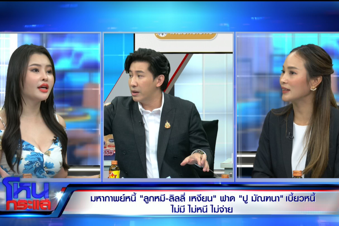 กรณีมหากาพย์ “ลูกหมี รัศมี ทองสิริไพรศรี” ทวงเงิน 2 ล้าน “ปู มัณฑนา” อดีตนางเอกชื่อดัง ขึ้นโรงพักไกล่เกลี่ยกัน แต่คดีส่อยืดเยื้อ เหตุฝ่ายปู และ “หาญส์ หิมะทองคำ” สามีปู มัณฑนา ลั่นวาจามีเงิน 1.4 ล้าน แต่ยังไม่สะดวกจ่าย ถามกลับจะรับผิดชอบต่อความเสียหายที่เกิดกับชื่อเสียงวงศ์ตระกูลอย่างไร ปูออกรายการพาดพิงไปถึง “ลิลลี่ เหงียน” จนต่อมาลูกหมี-ลิลลี่ และอ้อม ผู้เสียหายอีกราย จัดแถลงข่าวฟาดเดือดอีกยก