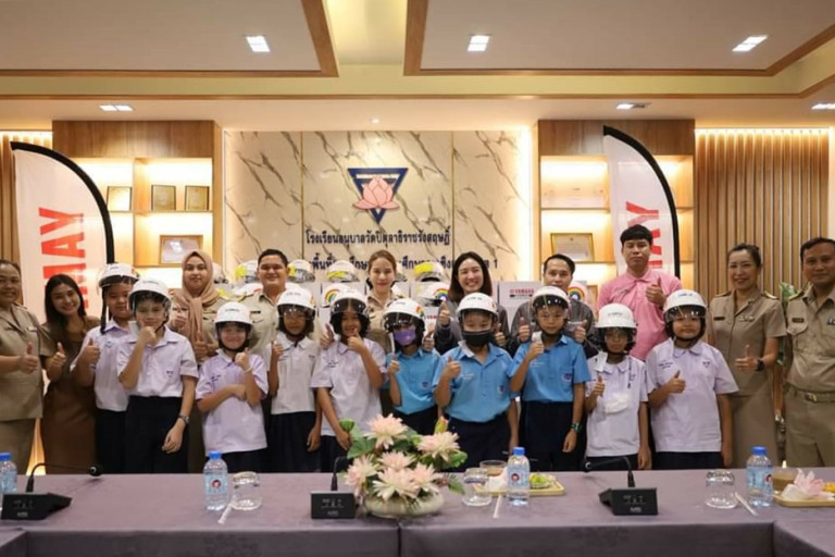 โดยนักเรียนได้รับมอบหมวกนิรภัยขนาดเล็กที่มี มอก.รับรองมาตราฐานถูกต้องจากบริษัท ไทยยามาฮ่า มอเตอร์ จำกัด พร้อมกับกล่าวว่า เพื่อเป็นการส่งเสริมมาตรการด้านความปลอดภัยให้กับนักเรียน และสร้างความตระหนักถึงการขับขี่ปลอดภัยบนท้องถนน พร้อมทั้งลดความเสี่ยงต่ออาการบาดเจ็บจากอุบัติเหตุที่อาจเกิดขึ้นใด้ และยังเป็นการปลูกฝังวินัยให้กับเยาวชนให้คุ้นชินกับการสวมหมวกนิรภัยตั้งแต่เด็กอีกด้วยขณะเดียวกันทางผู้อำนวยการโรงเรียนคณะครูและนักเรียนกล่าวขอขอบคุณบริษัทไทยยามาฮ่า มอเตอร์ที่นำหมวกนิรภัยมอบให้กับนักเรียน