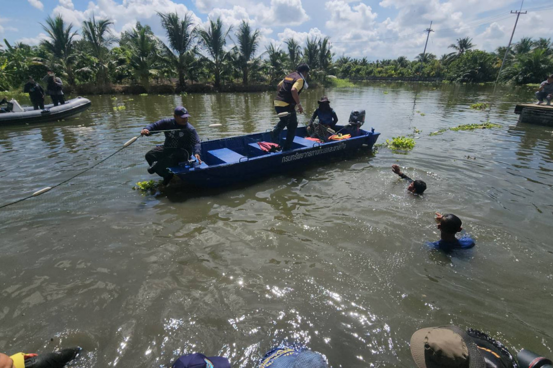 เมื่อเวลา 10.00 น.ของวันที่ 09 กรกฎาคม 2567 ที่บริเวณริมคลองท่าแร้ง หน้าวัดยกกระบัตร หมู่ที่ 6 ต.ยกกระบัตร อ.บ้านแพ้ว จ.สมุทรสาคร ดร.ณมาณิตา กลับบ้านเกาะ ผู้ช่วยรัฐมนตรีประจำกระทรวงเกษตรและสหกรณ์ ประธานคณะกรรมการติดตามและขับเคลื่อนงานด้านการเกษตรและสหกรณ์ ตามนโยบายรัฐมนตรีว่าการกระทรวงเกษตรและสหกรณ์ พร้อมด้วย นายเผดิม รอดอินทร์ ประมงจังหวัดสมุทรสาคร นายพิรุณโรจน์ นาคดนตรี นายอำเภอบ้านแพ้ว นางขวัญดาว สุมนัส นายกเทศมนตรีตำบลหลักห้า นายกมล ไกรวัตนุสสรณ์ ประธานชมรมเรืออวนลาก จังหวัดสมุทรสาคร ผู้แทนจากหน่วยงานในสังกัดกระทรวงเกษตรและสหกรณ์ กรมทรัพยากรทางทะเลและชายฝั่งที่8 พันธมิตรทั้งในส่วนของผู้ประกอบการโรงงานปลาป่น แพปลา ชาวประมงเรืออวนรุน และพี่น้องชาวประมงพื้นบ้าน รวมถึงกลุ่มเกษตรกรในพื้นที่และผู้ที่ได้รับผลกระทบจากภาวะวิกฤติปลาหมอคางดำ เข้าร่วมเปิดปฏิบัติการดีเดย์ “ลงแขก ลงคลอง ครั้งที่ 1” รวมพลนักล่า กำจัดวายร้ายปลาหมอคางดำให้สิ้นซาก