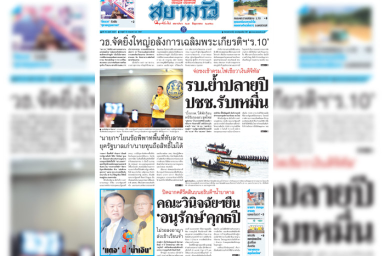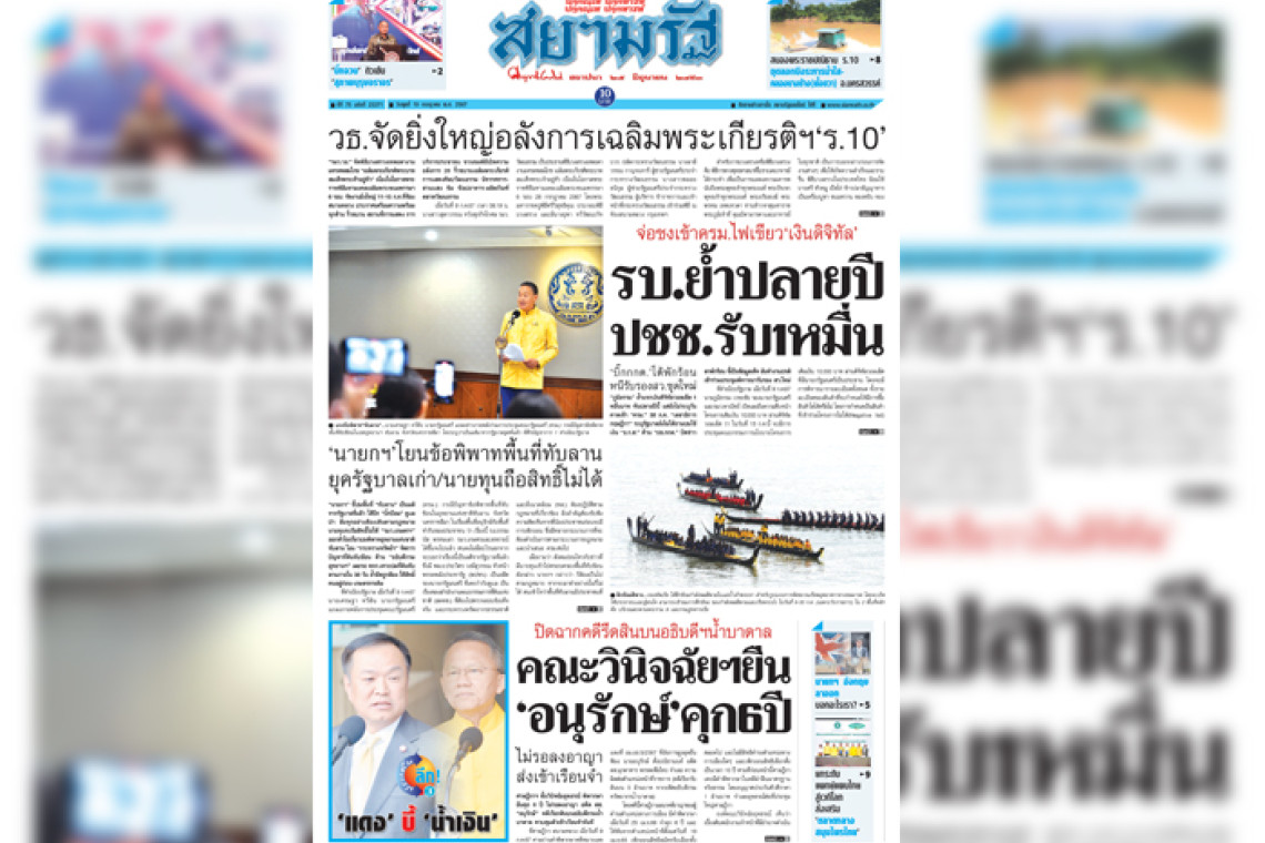 หน้า 1 หนังสือพิมพ์สยามรัฐรายวัน ฉบับวันพุธที่ 10 กรกฎาคม 2567