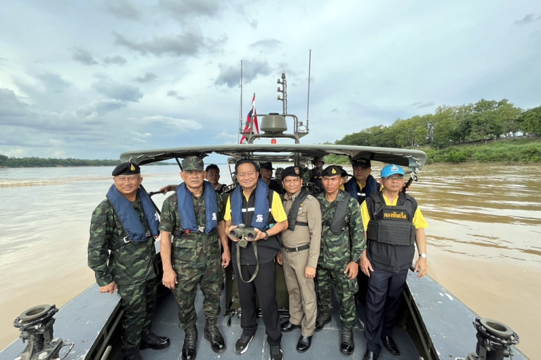ที่กองบังคับการหน่วยเรือรักษาความสงบเรียบร้อยตามแนวแม่น้ำโขง เขตอุบลราชธานี กองทัพเรือ นายศุภศิษย์ กอเจริญยศ ผู้ว่าราชการจังหวัดอุบลราชธานี ผู้อำนวยการกองอำนวยการรักษาความมั่นคงภายในจังหวัดอุบลราชธานี พันเอก ชัยภัทร เงินดีเจริญ รองผู้บัญชาการมณฑลทหารบกที่ 22 นาวาเอกนิคม แจ่มยิ่ง ผู้บังคับการหน่วยเรือรักษาความสงบเรียบร้อยตามลำแม่น้ำโขงเขตอุบลราชธานี พร้อมหัวหน้าส่วนราชการในพื้นที่ตามแนวชายแดน ร่วมบูรณาการแก้ไขปัญหายาเสพติด รวมทั้งการลักลอบเคลื่อนย้ายแรงงานผิดกฎหมาย และสินค้าผิดกฎหมายตามแนวชายแดน